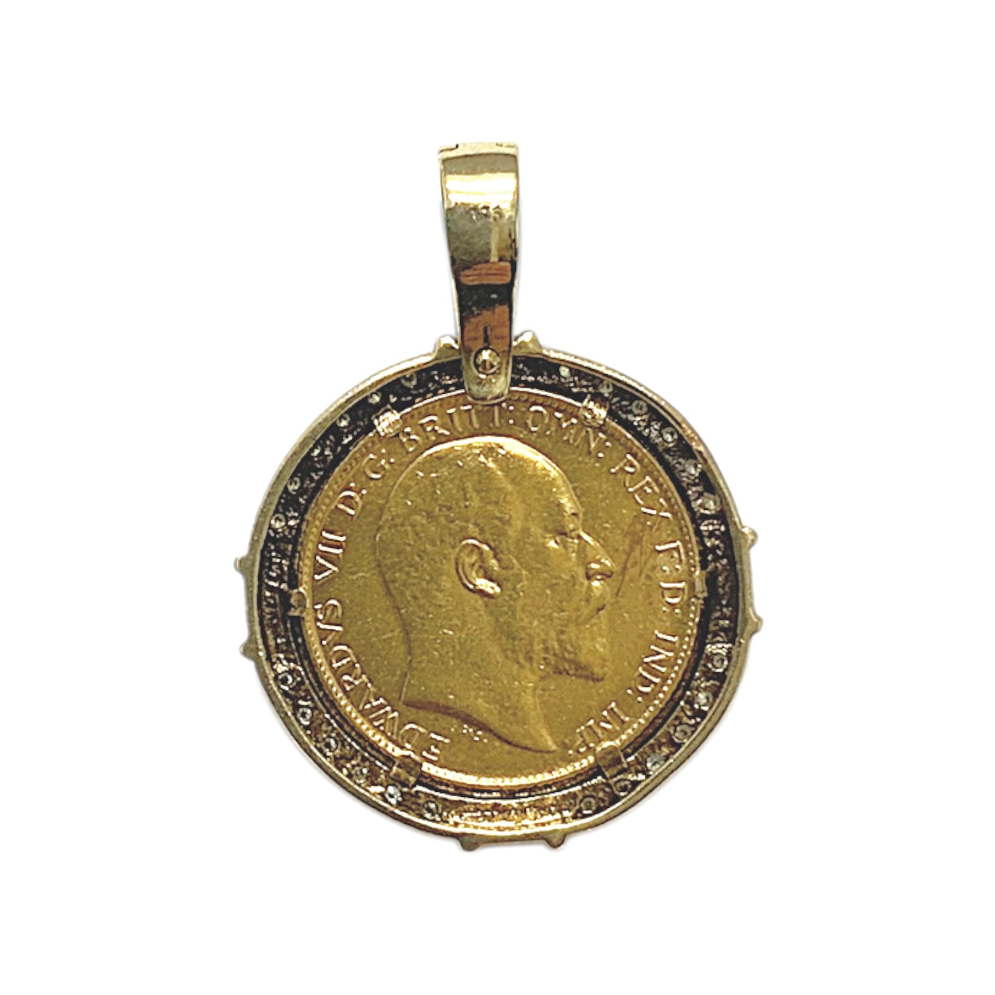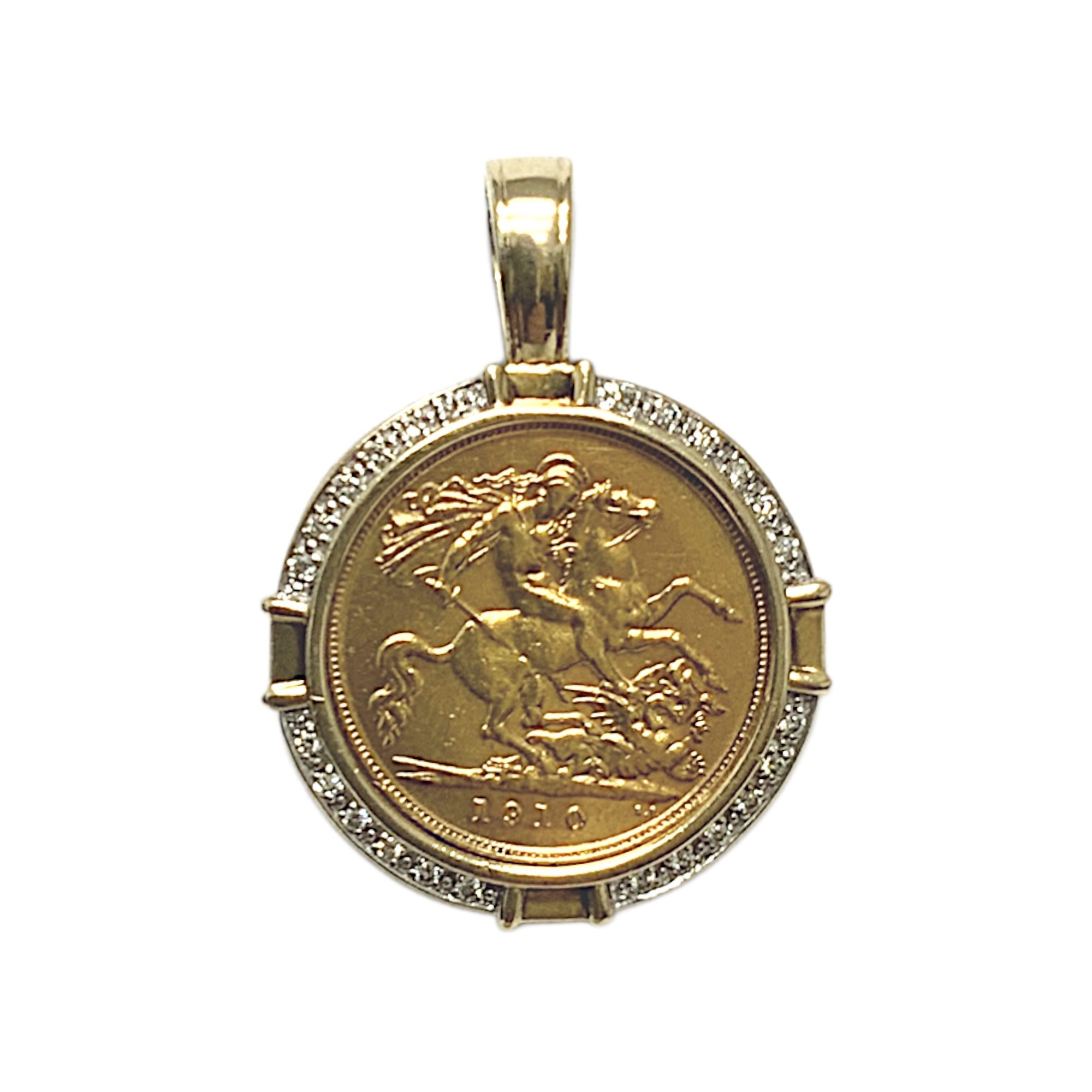 22CT YG GOLD 1910 HALF SOVEREIGN PENDANT 7.2GMS TDW0.12CTS