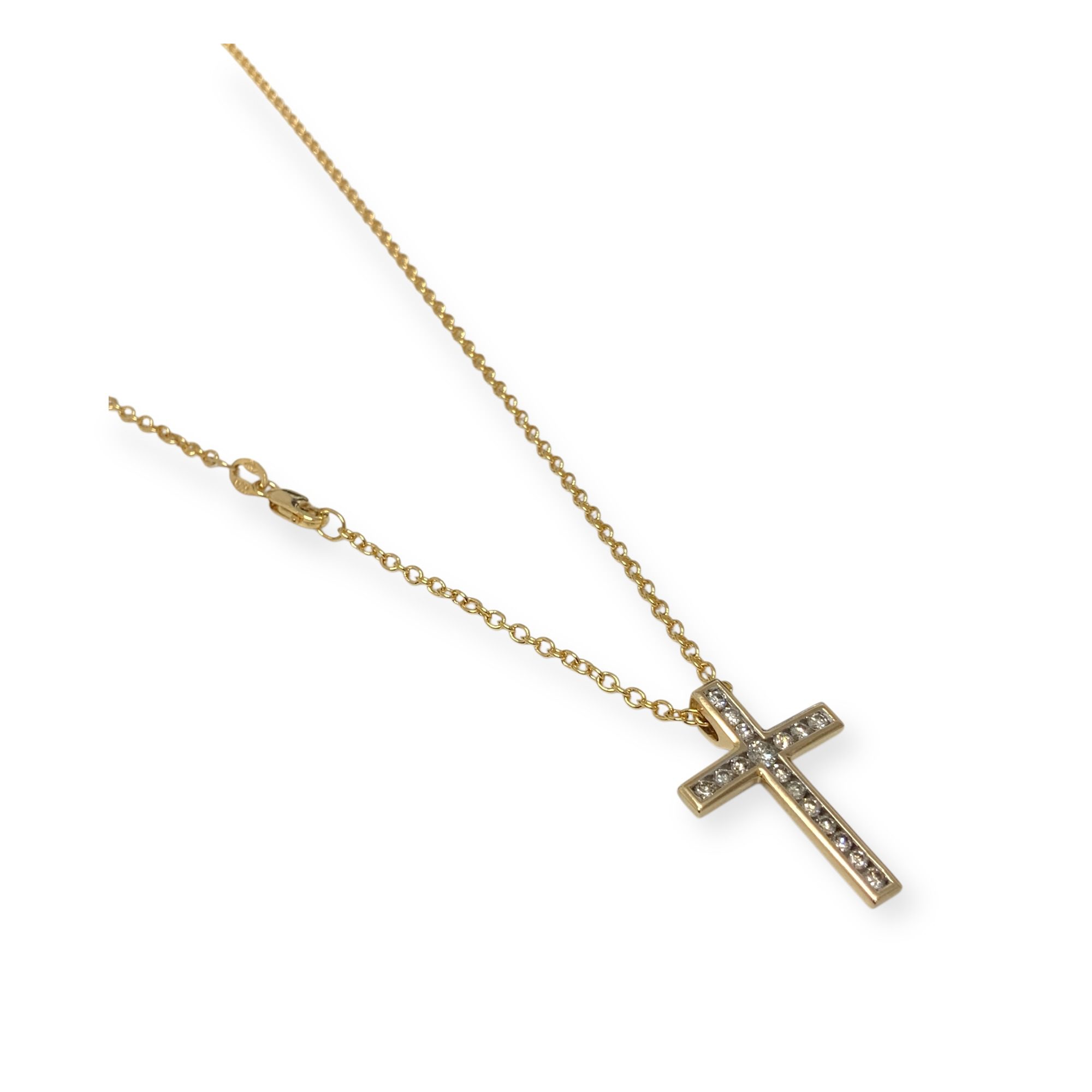 9CT GOLD NECKLACE 5.4GMS CROSS PENDANT TDW0.50CTS