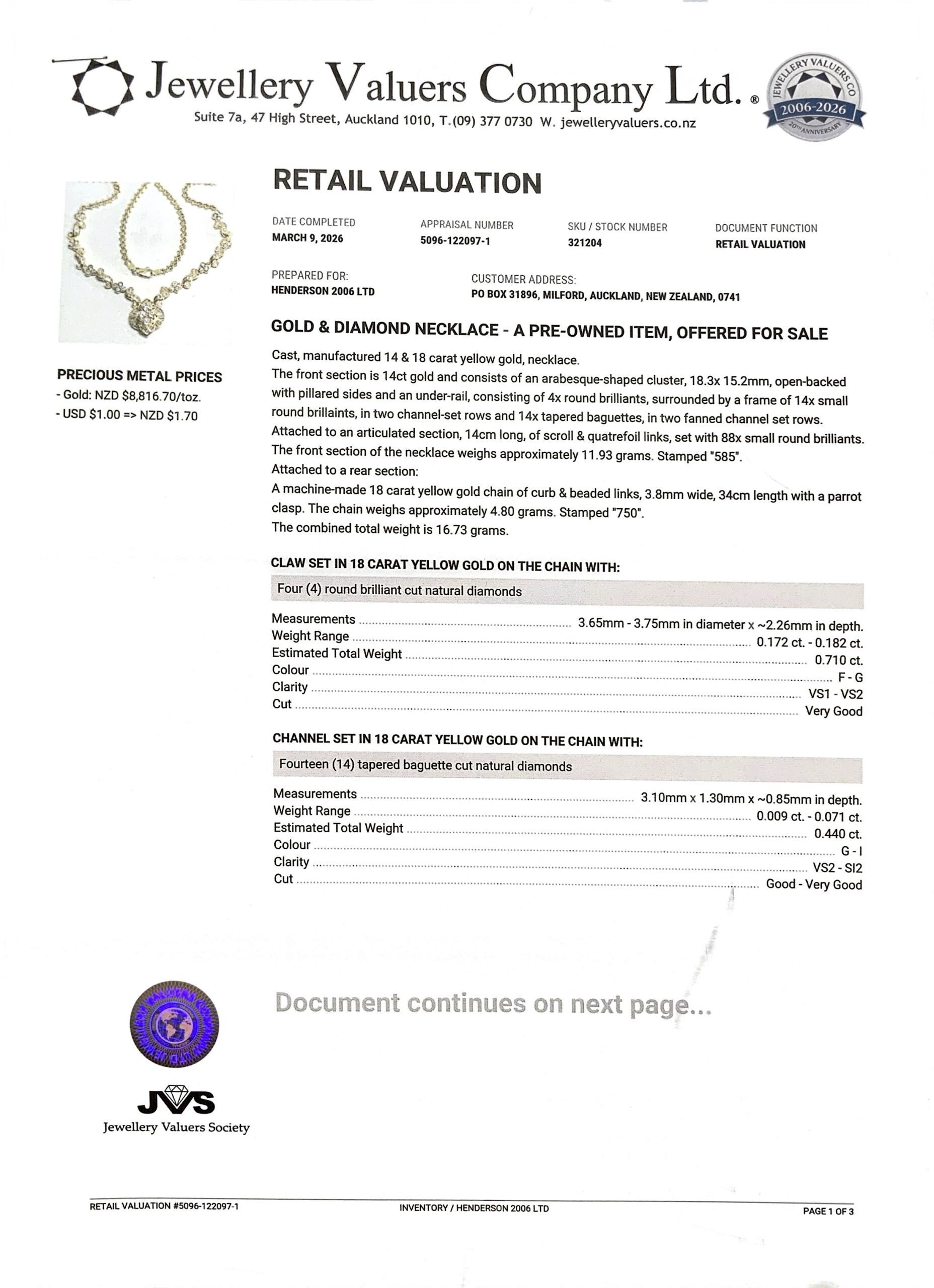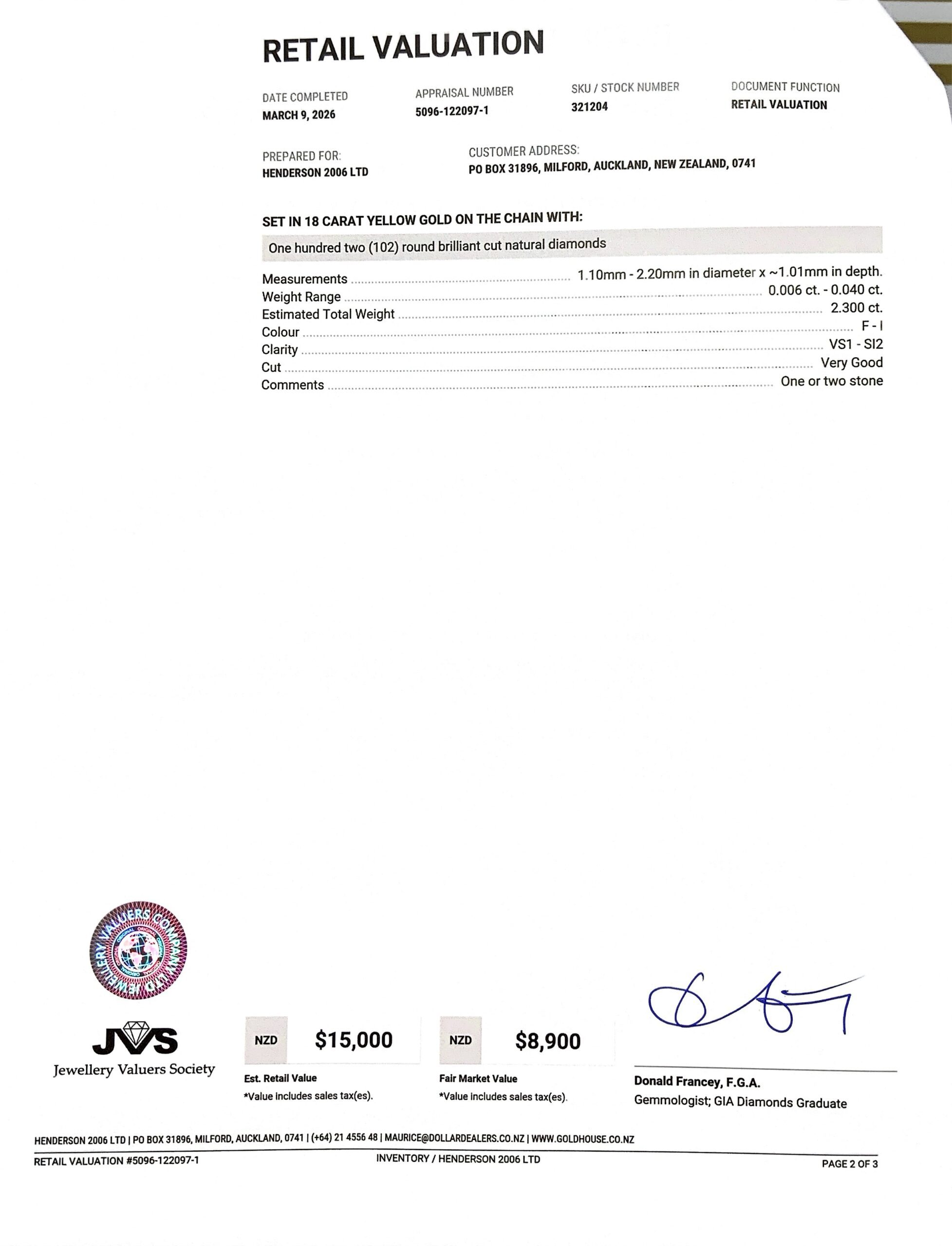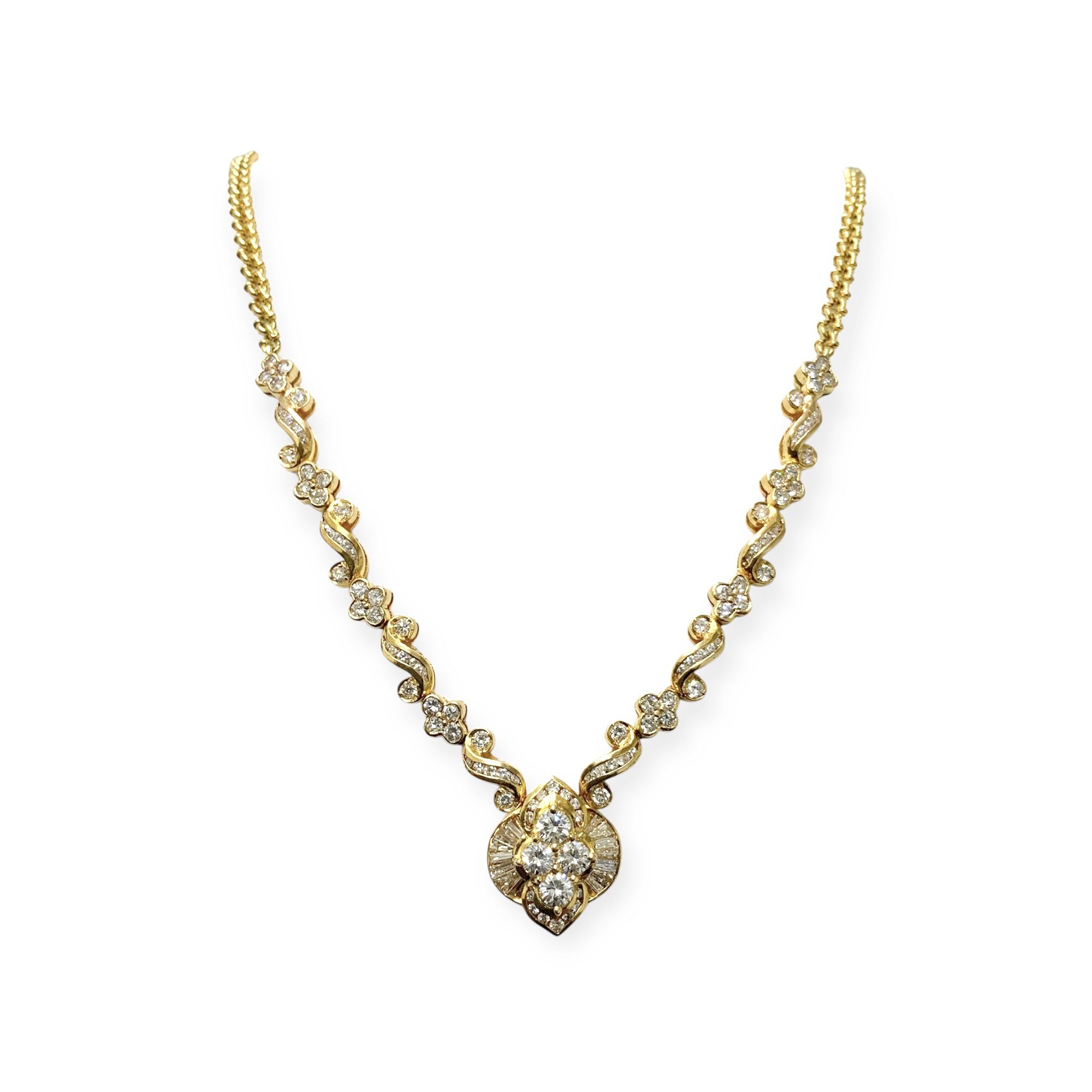 18CT YG GOLD CHAIN + 14CT PENDANT 16.73GMS TDW3.45CTS + VAL