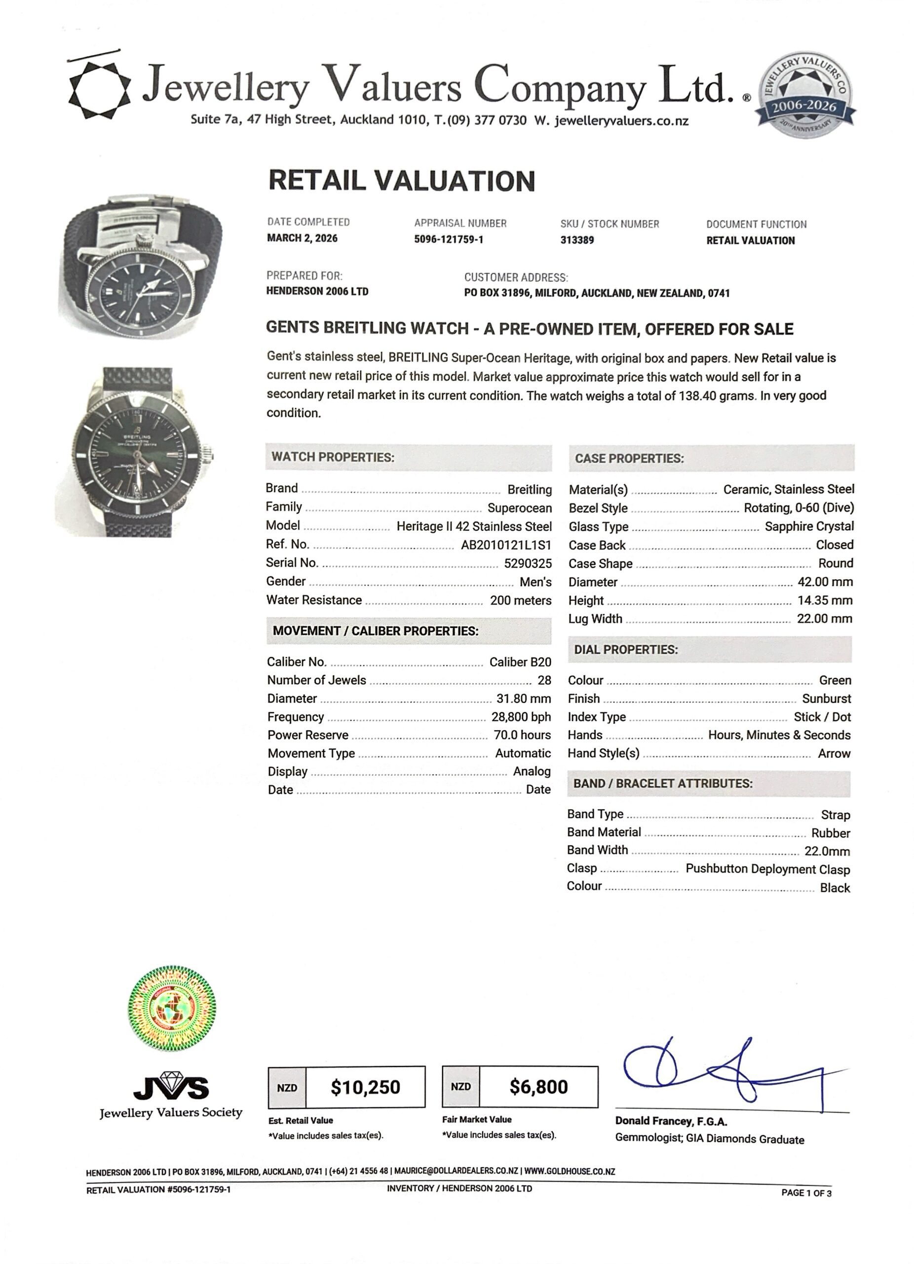 BREITLING SUPEROCEAN HERITAGE II 42MM WATCH 138.1GMS AB2010 S/N:5290325 FULL SET + VAL