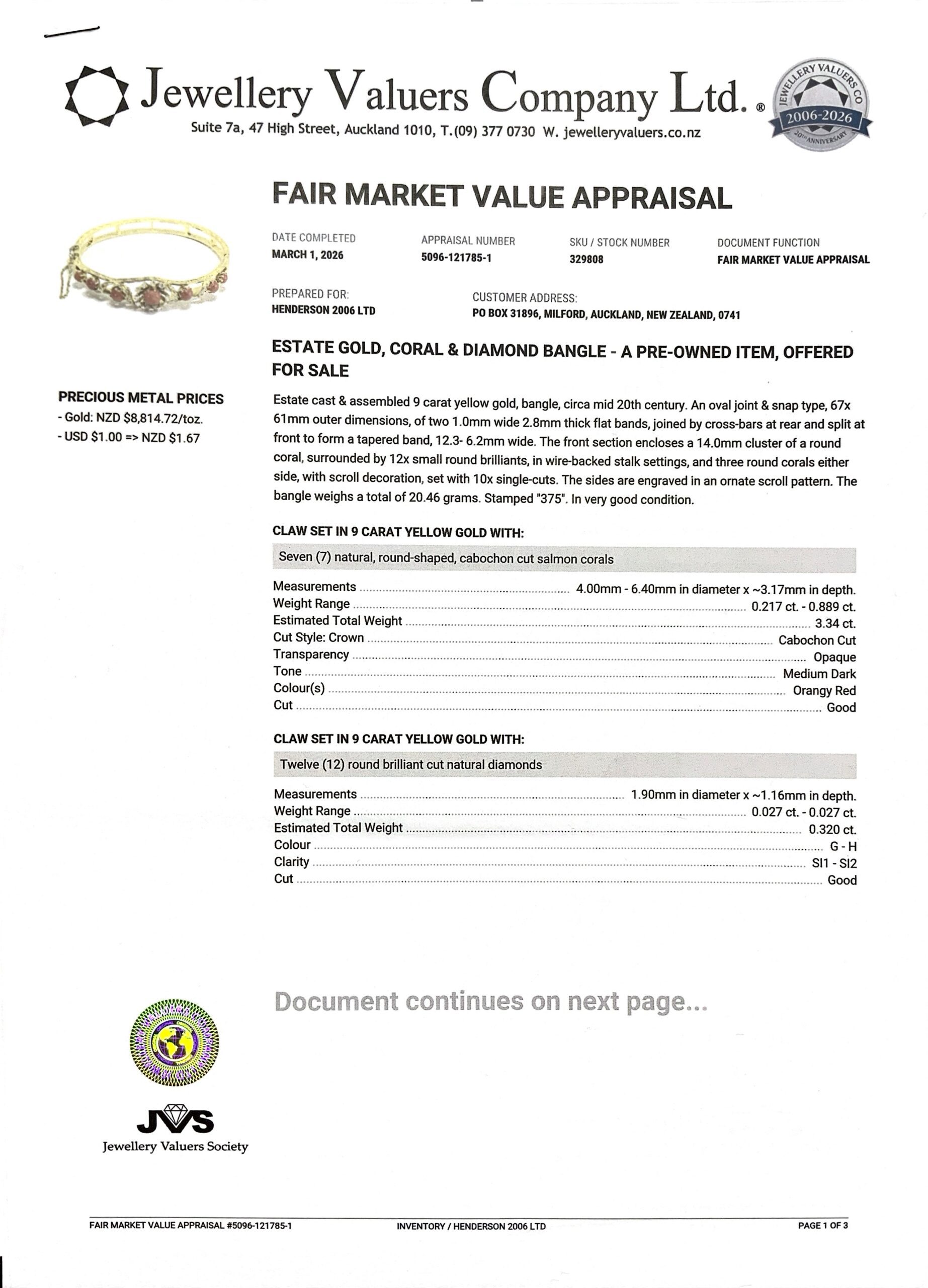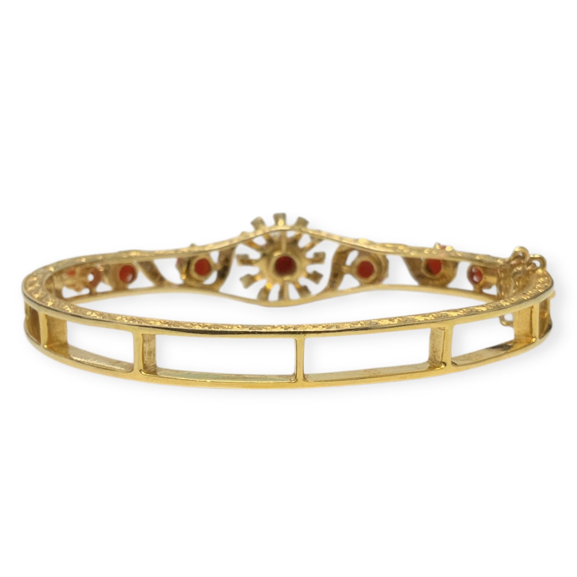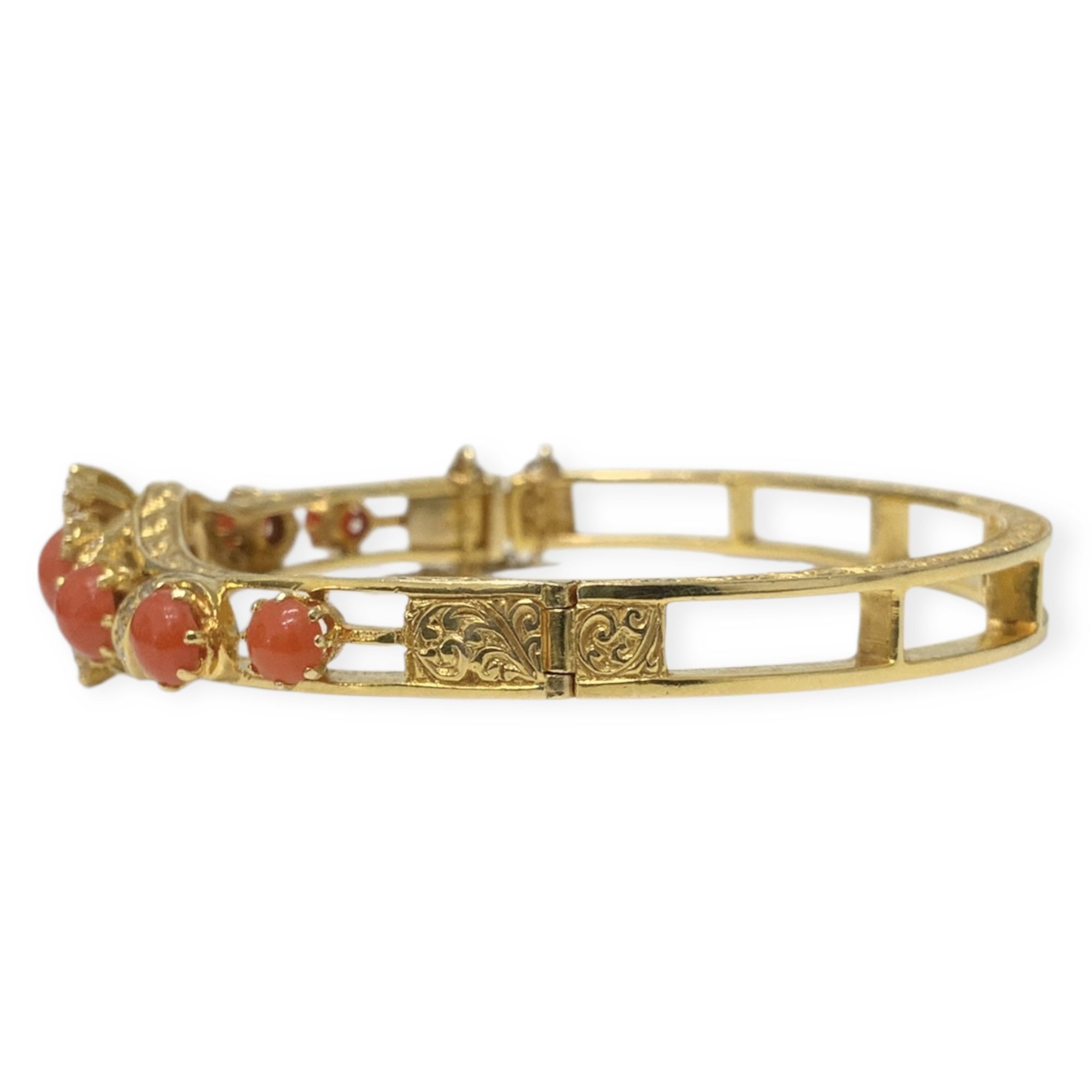 9CT Y/G GOLD CORAL ESTATE BANGLE 20.5GMS TDW0.32CTS + VAL