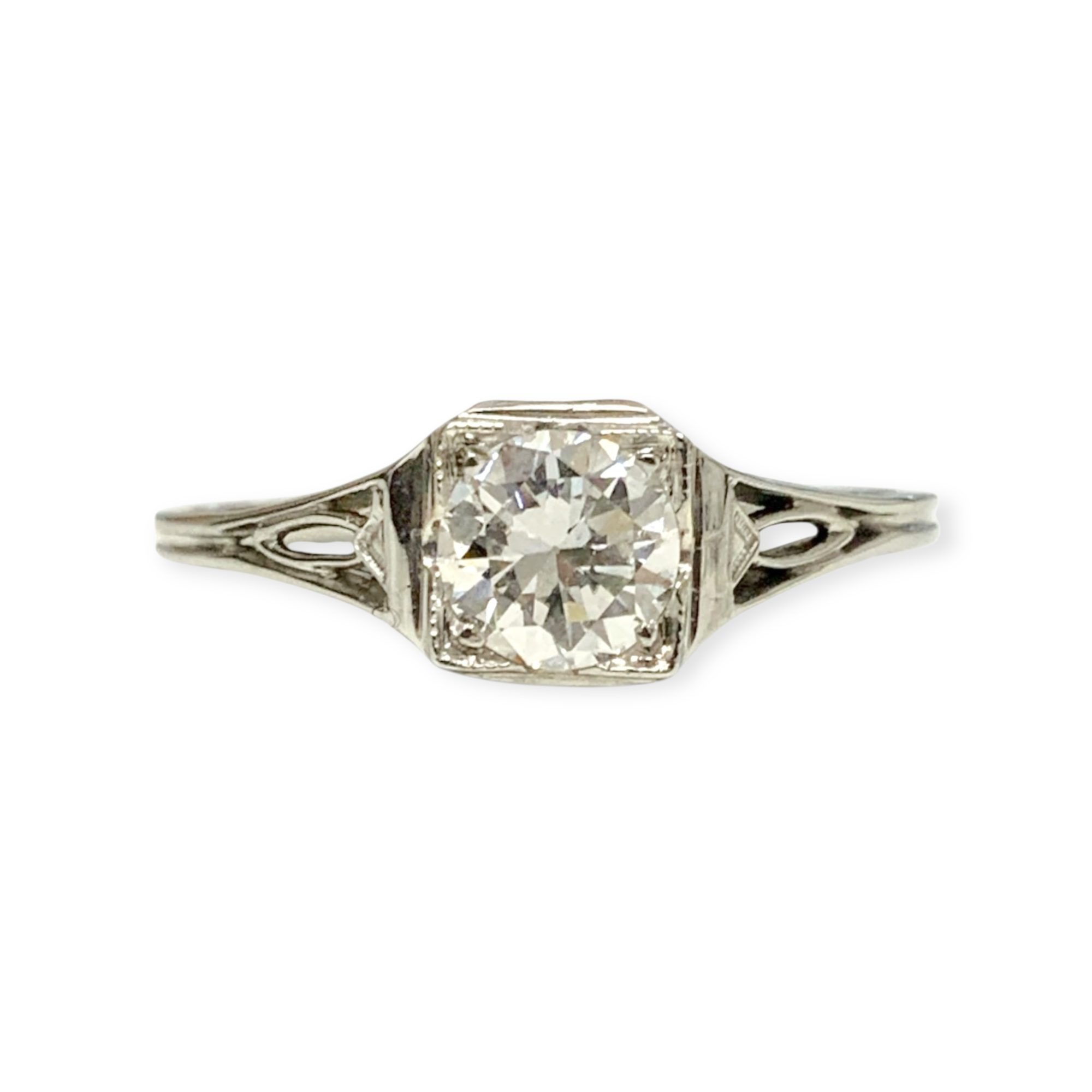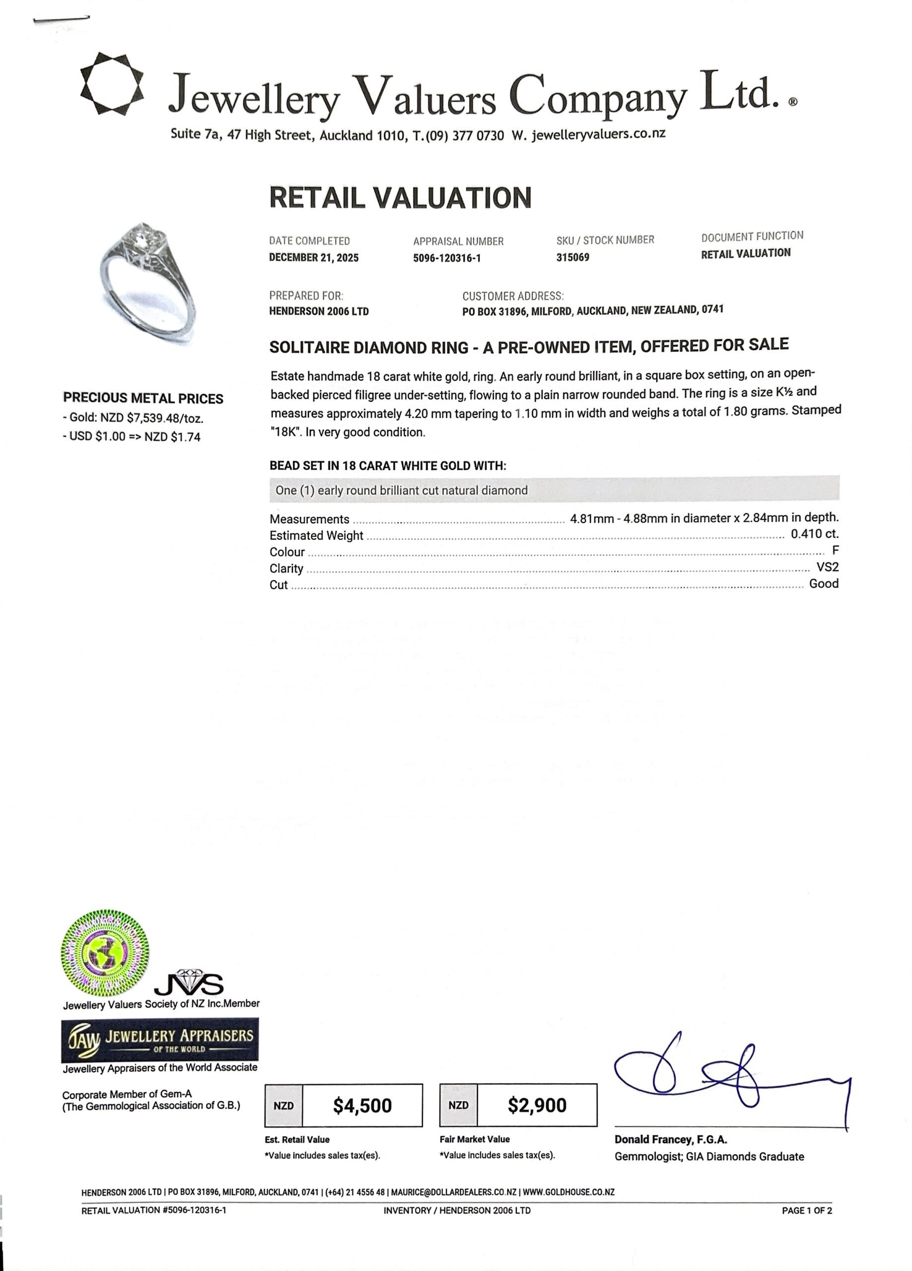 18CT WHITE GOLD GOLD RING 1.8GMS 0.41 TDW (SETTING IS NOT SYMETRICAL)