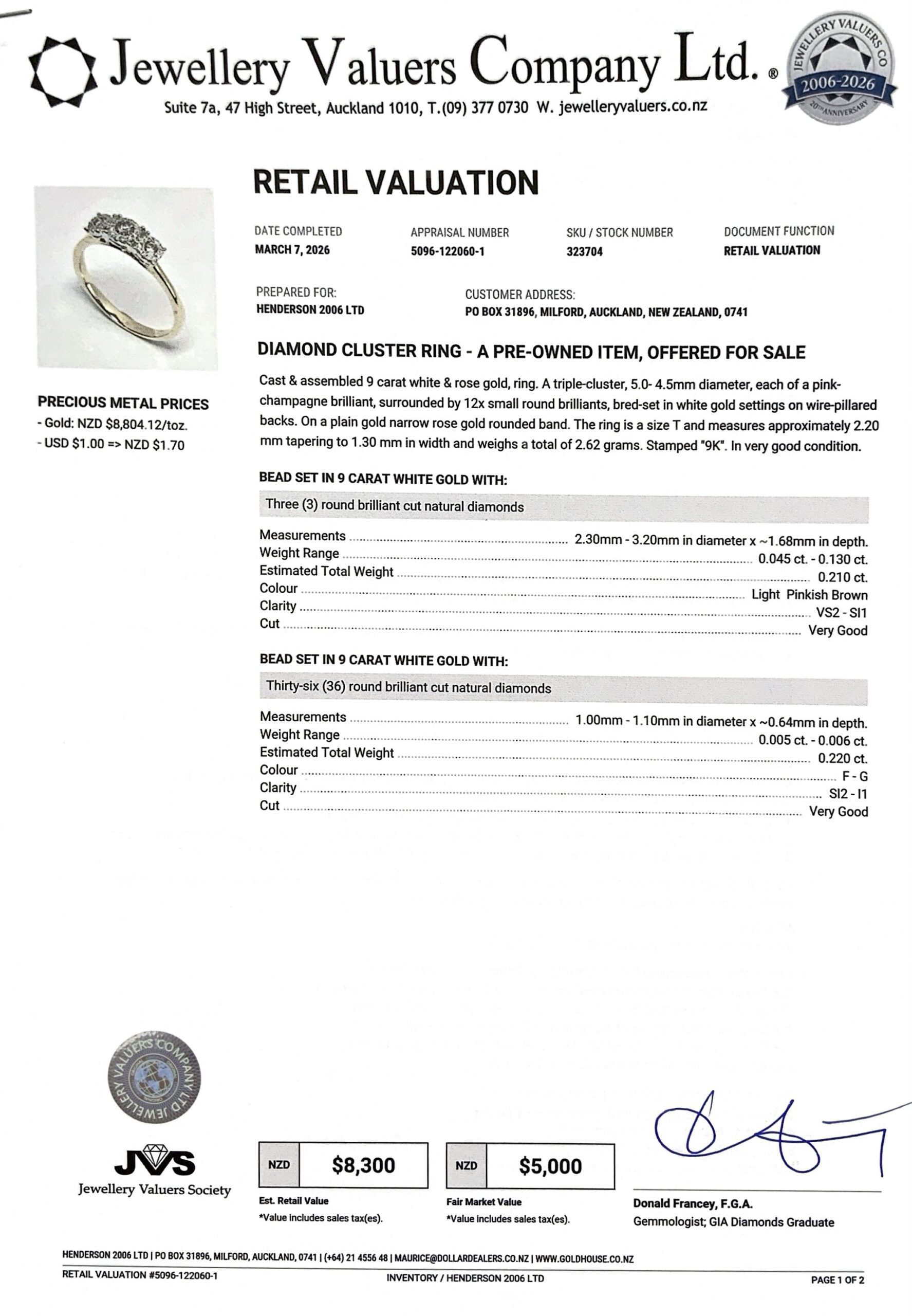 9CT 2TONE GOLD CLUSTER RING 2.6GMS TDW0.43CTS + VAL