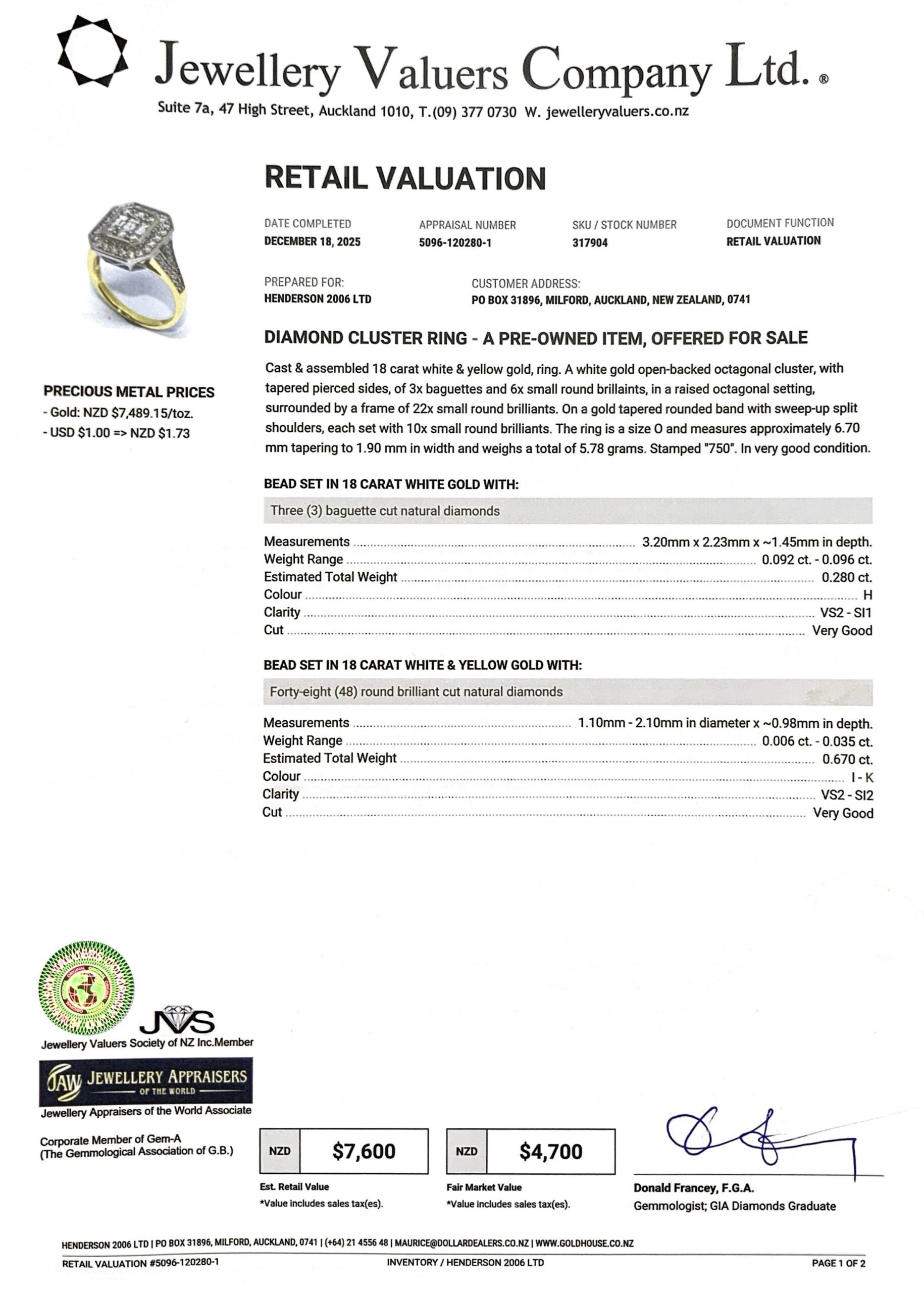 9CT 2TONE GOLD CLUSTER RING 5.8GMS TDW0.95CTS + VAL