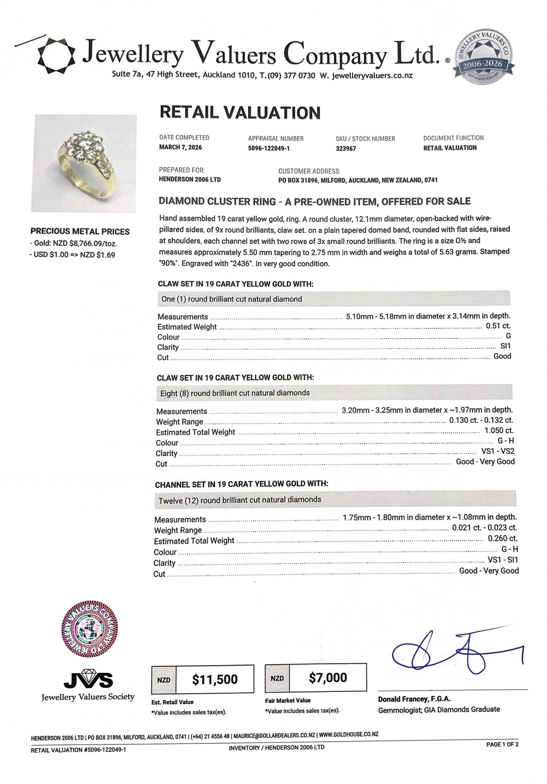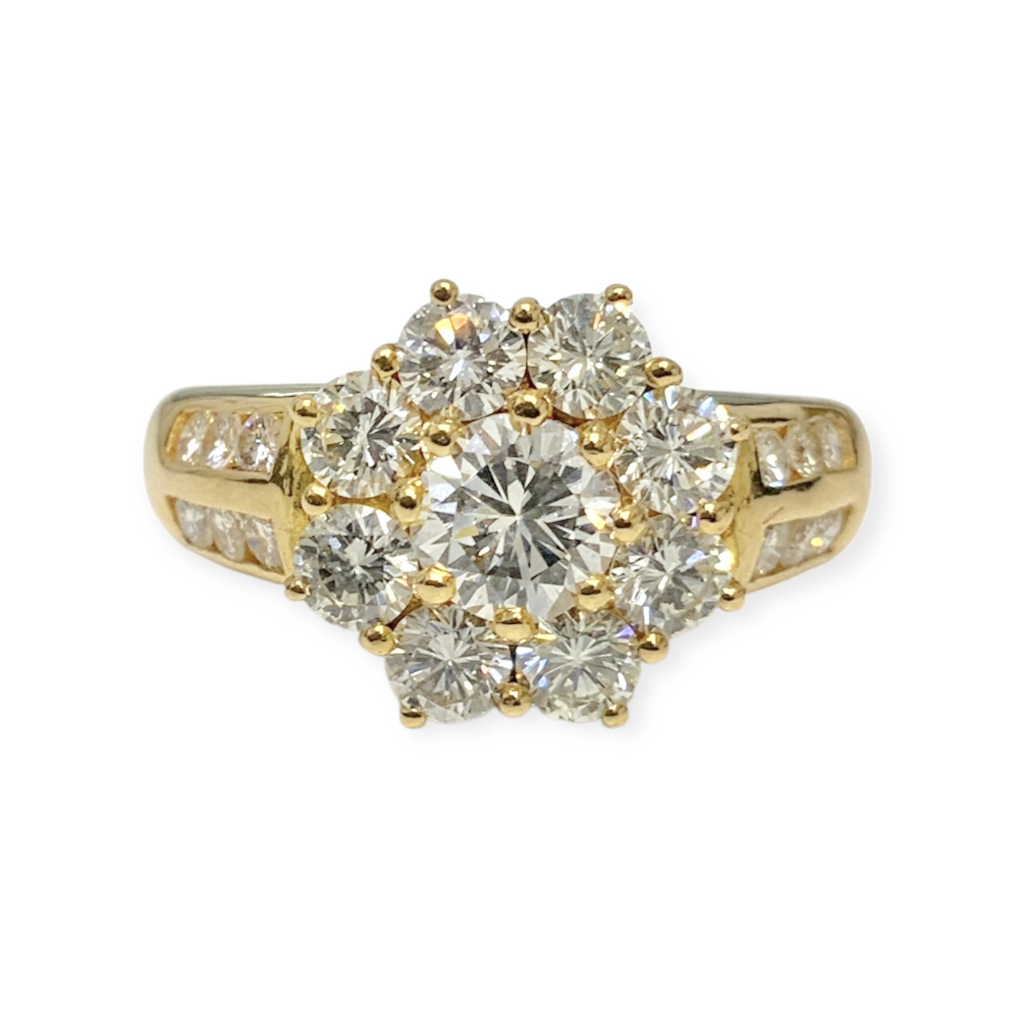 19CT YG GOLD CLUSTER RING 5.6GMS TDW1.82CTS (CNTR 0.51 G SI1) + VAL