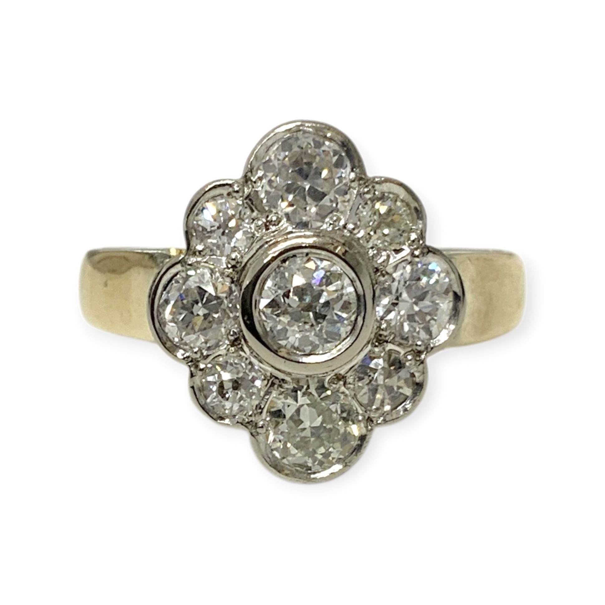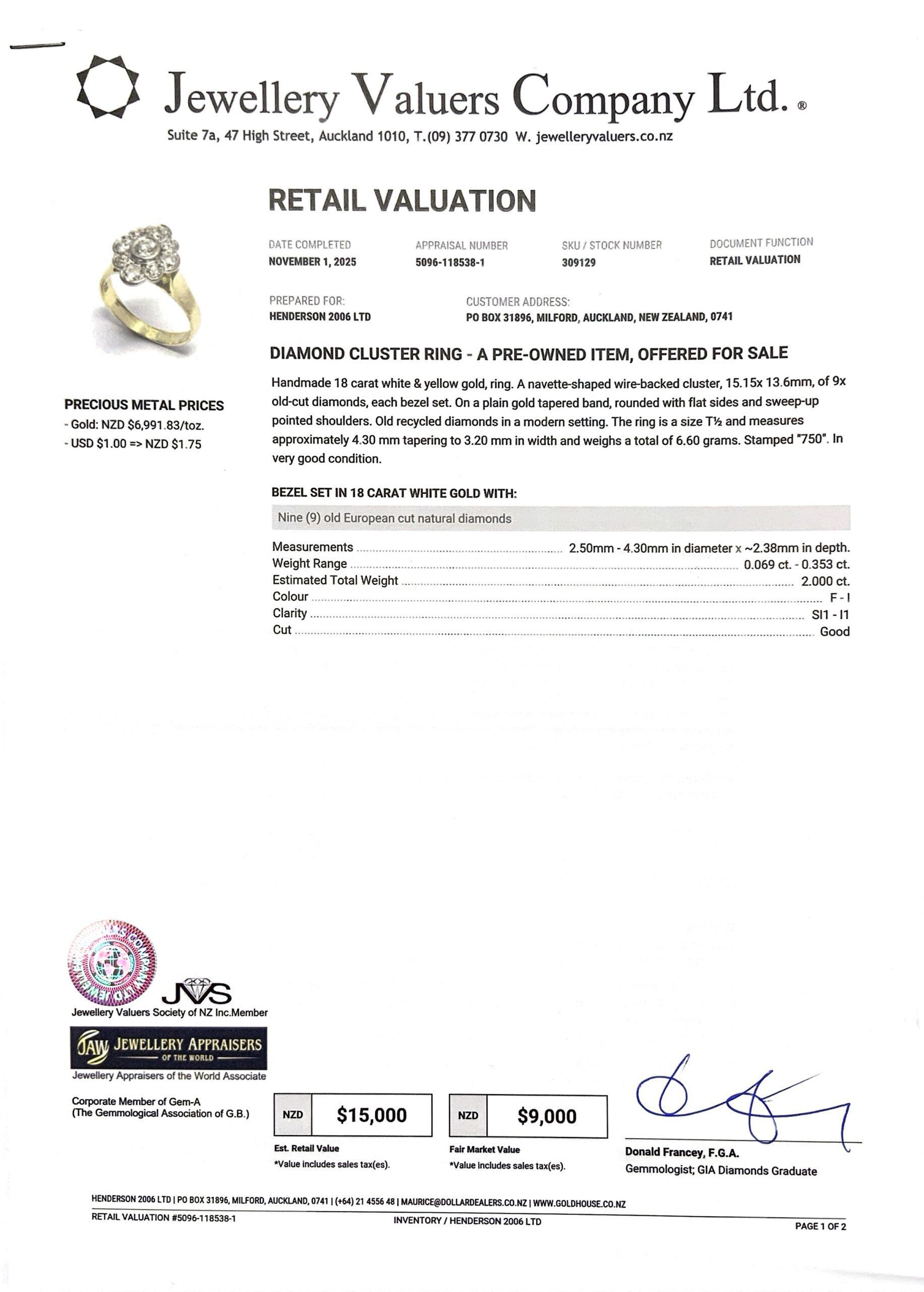 18CT Y/G GOLD CLUSTER RING 6.6GMS TDW2.00CTS + VAL