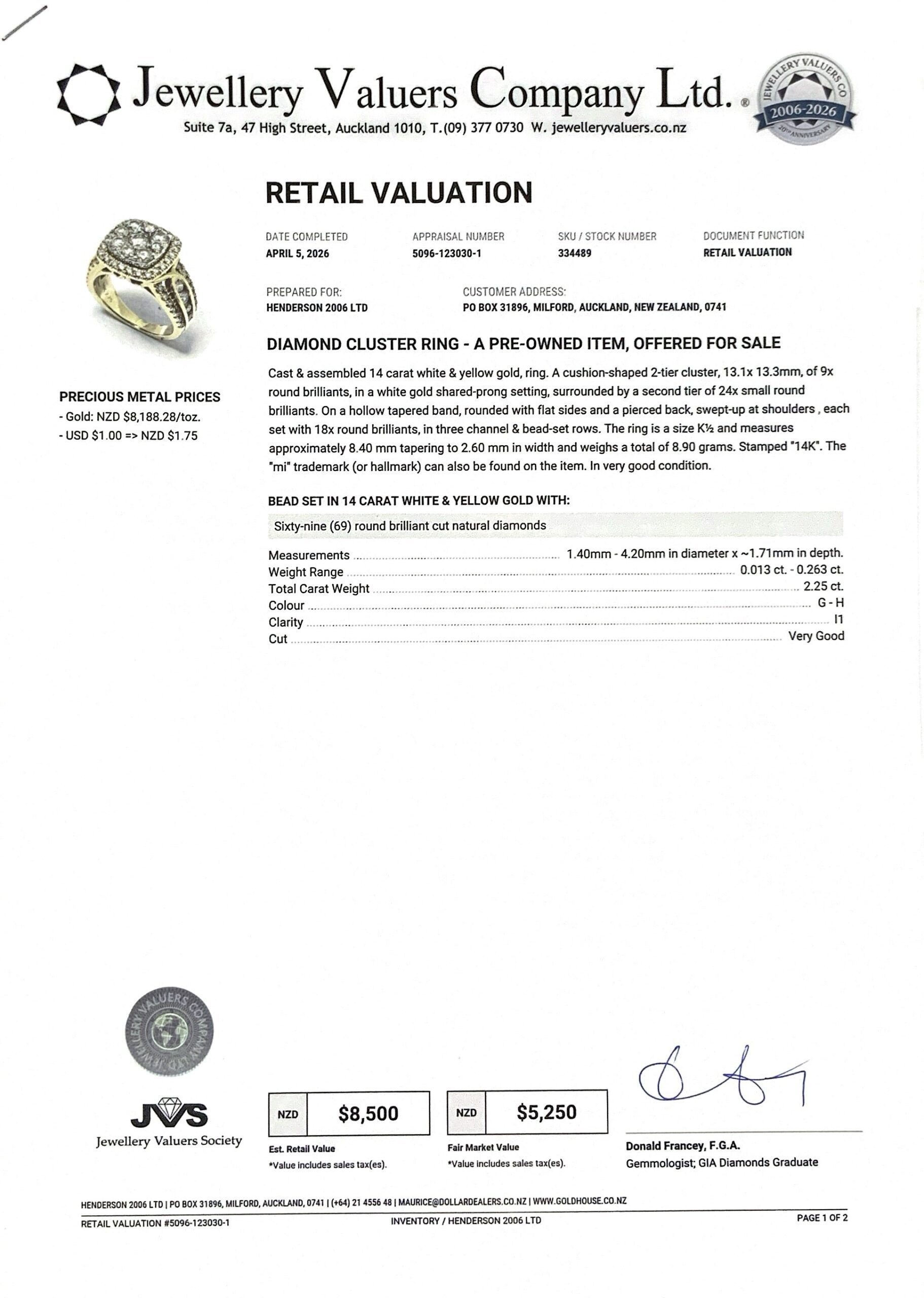 14CT 2TONE GOLD CLUSTER RING 8.9GMS TDW2.25CTS + VAL