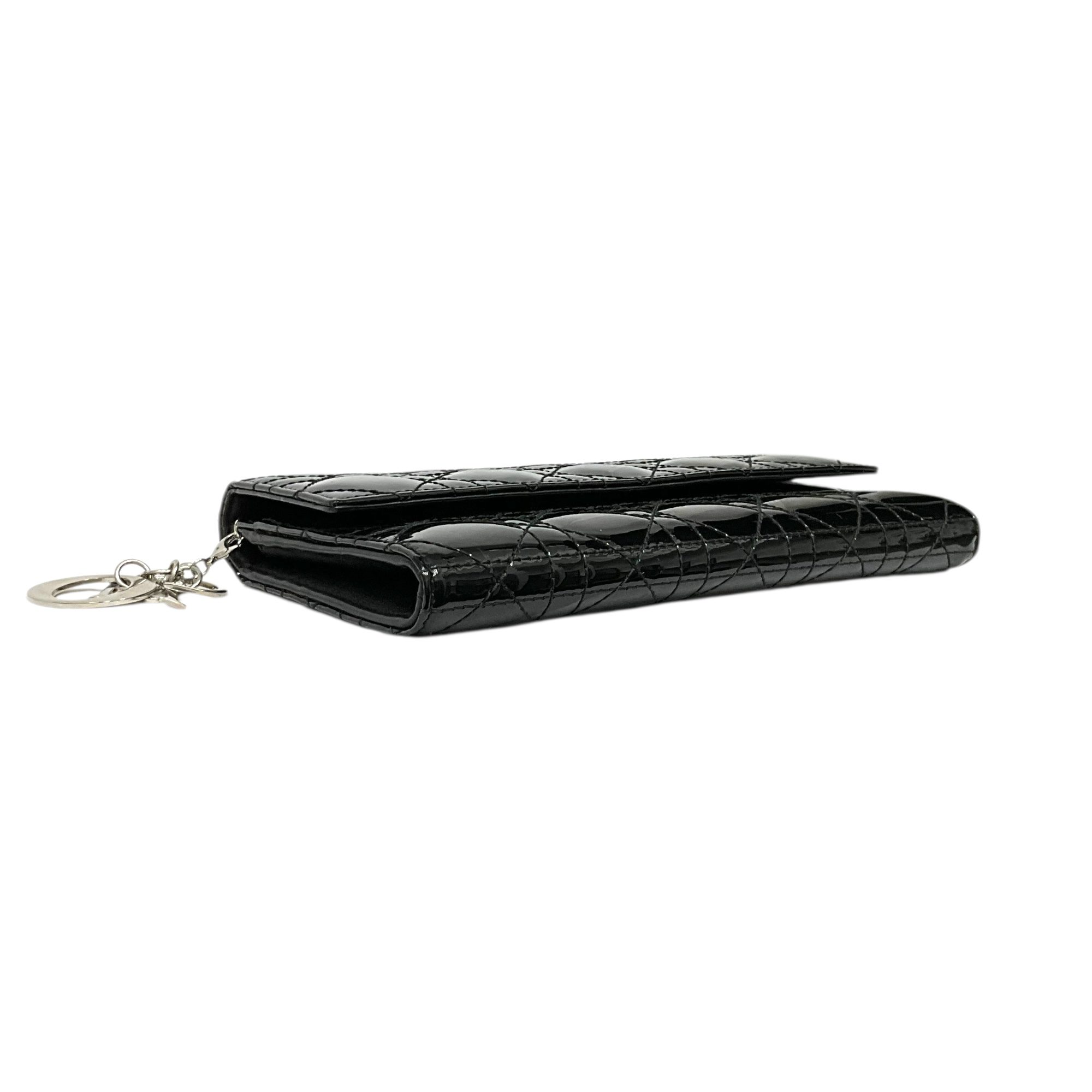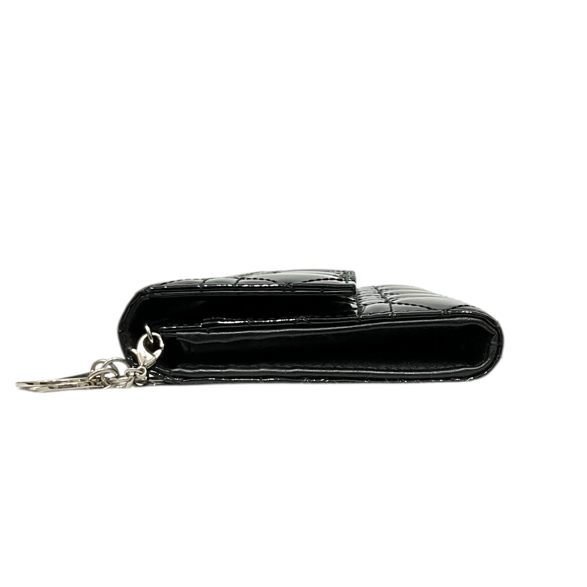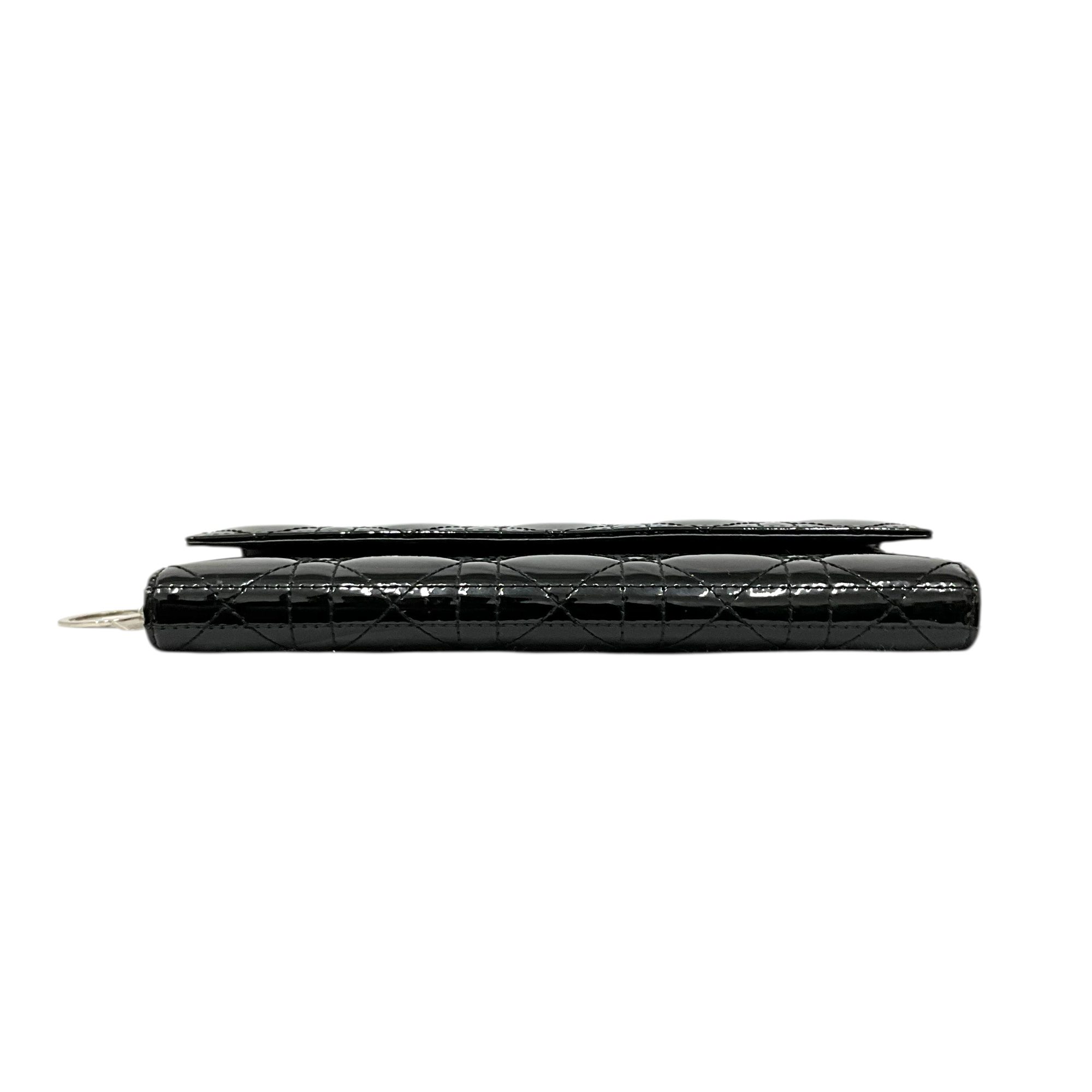 DIOR BLACK PATENT CANNAGE QUILTED LAMBSKIN LADY DIOR WALLET 25MA0133 + D/B