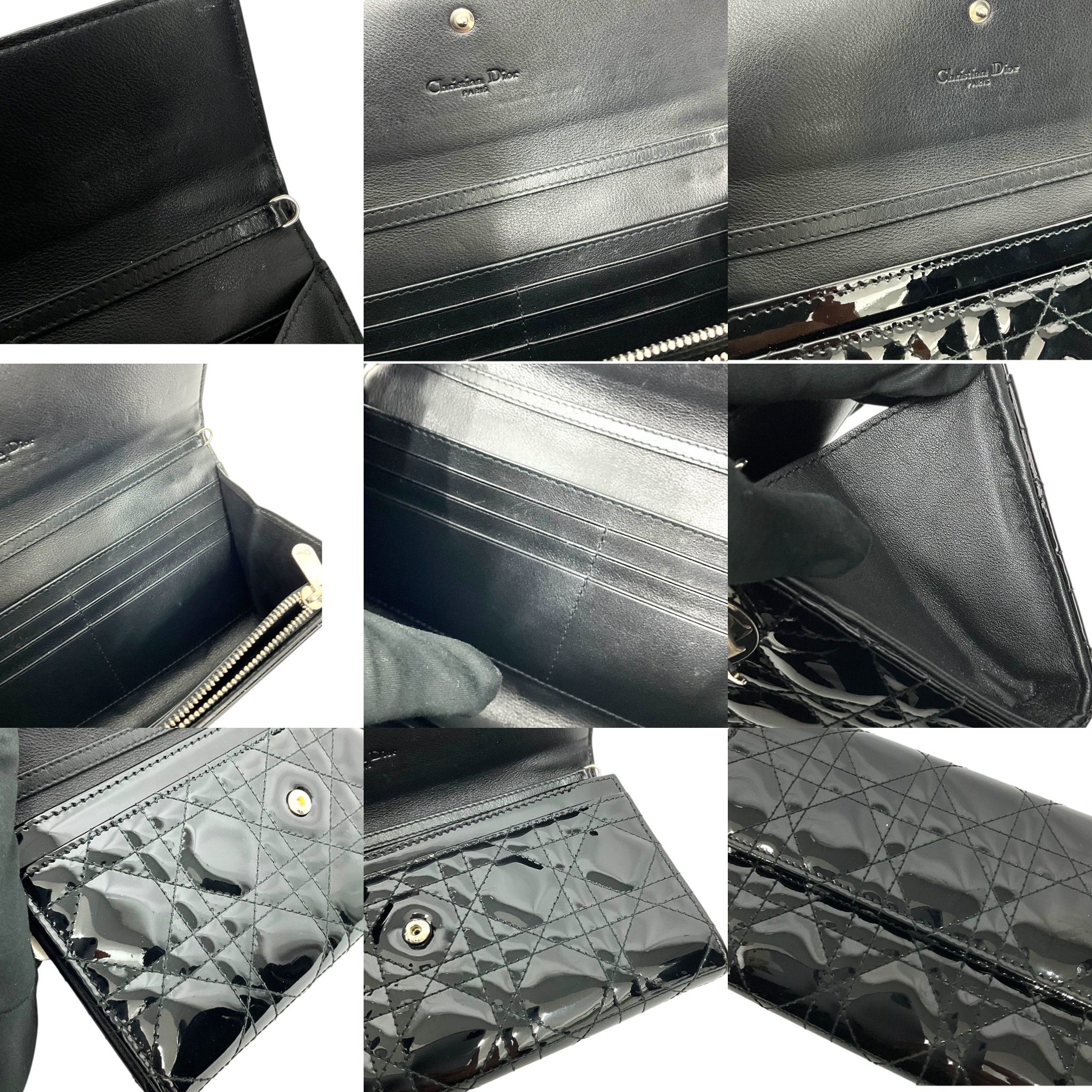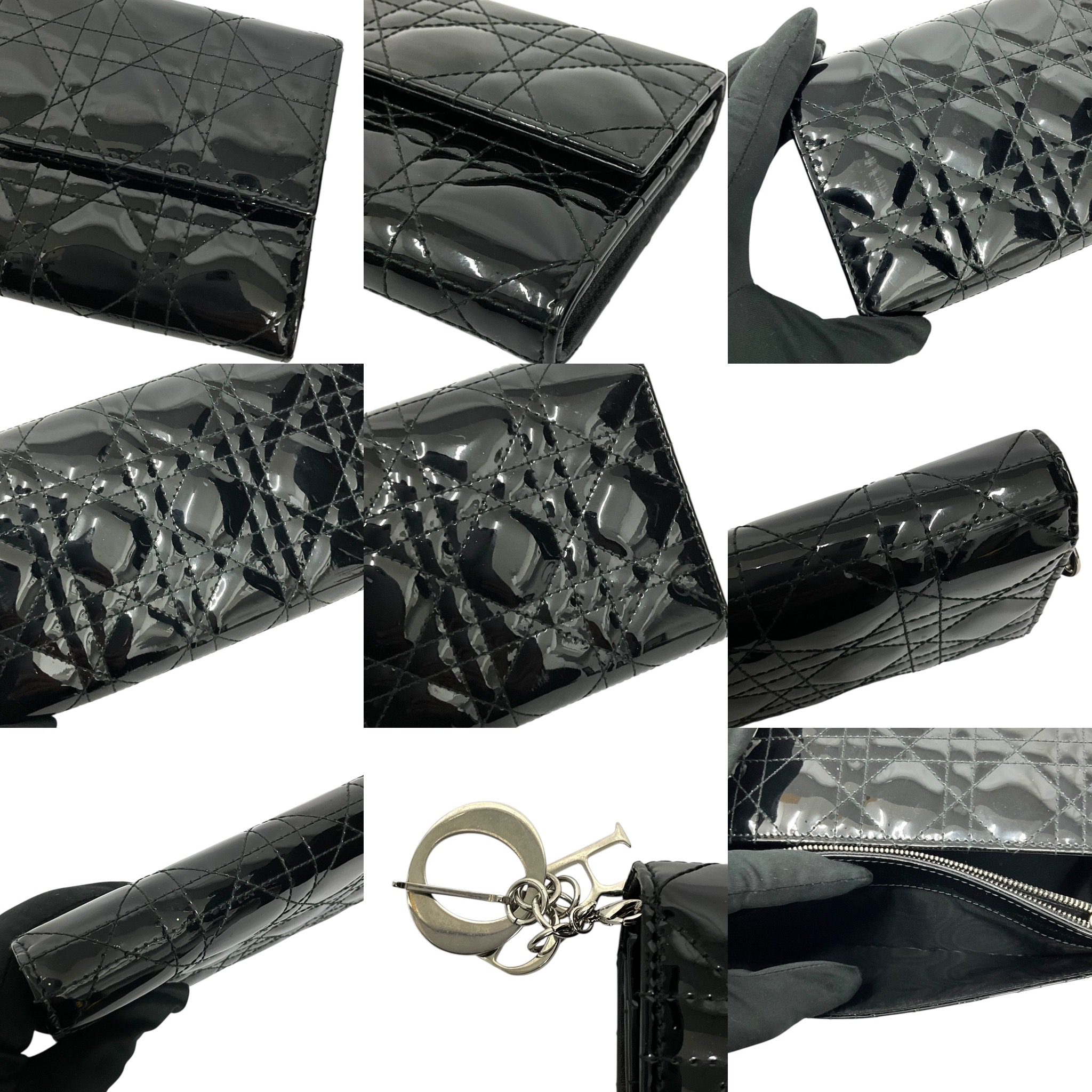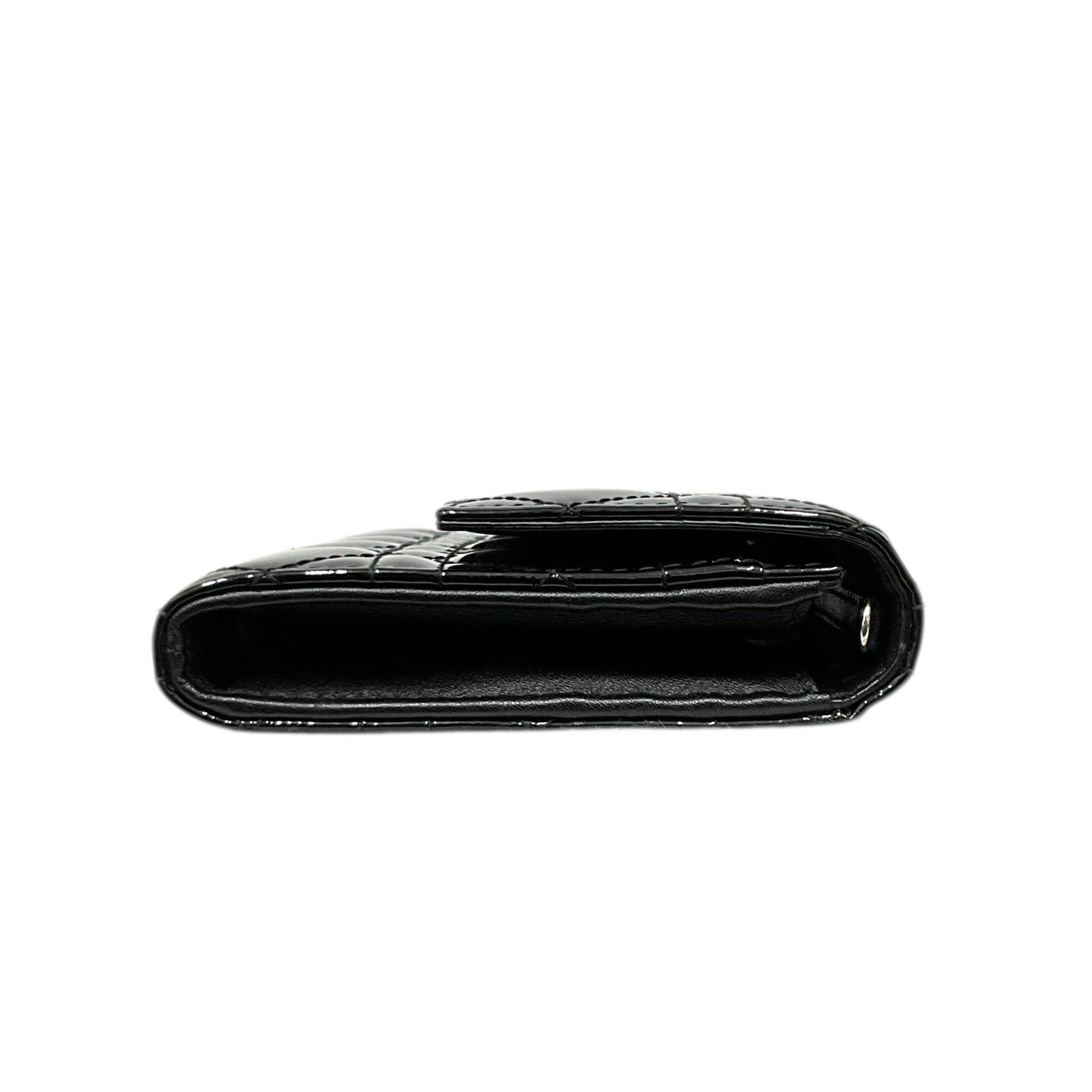 DIOR BLACK PATENT CANNAGE QUILTED LAMBSKIN LADY DIOR WALLET 25MA0133 + D/B
