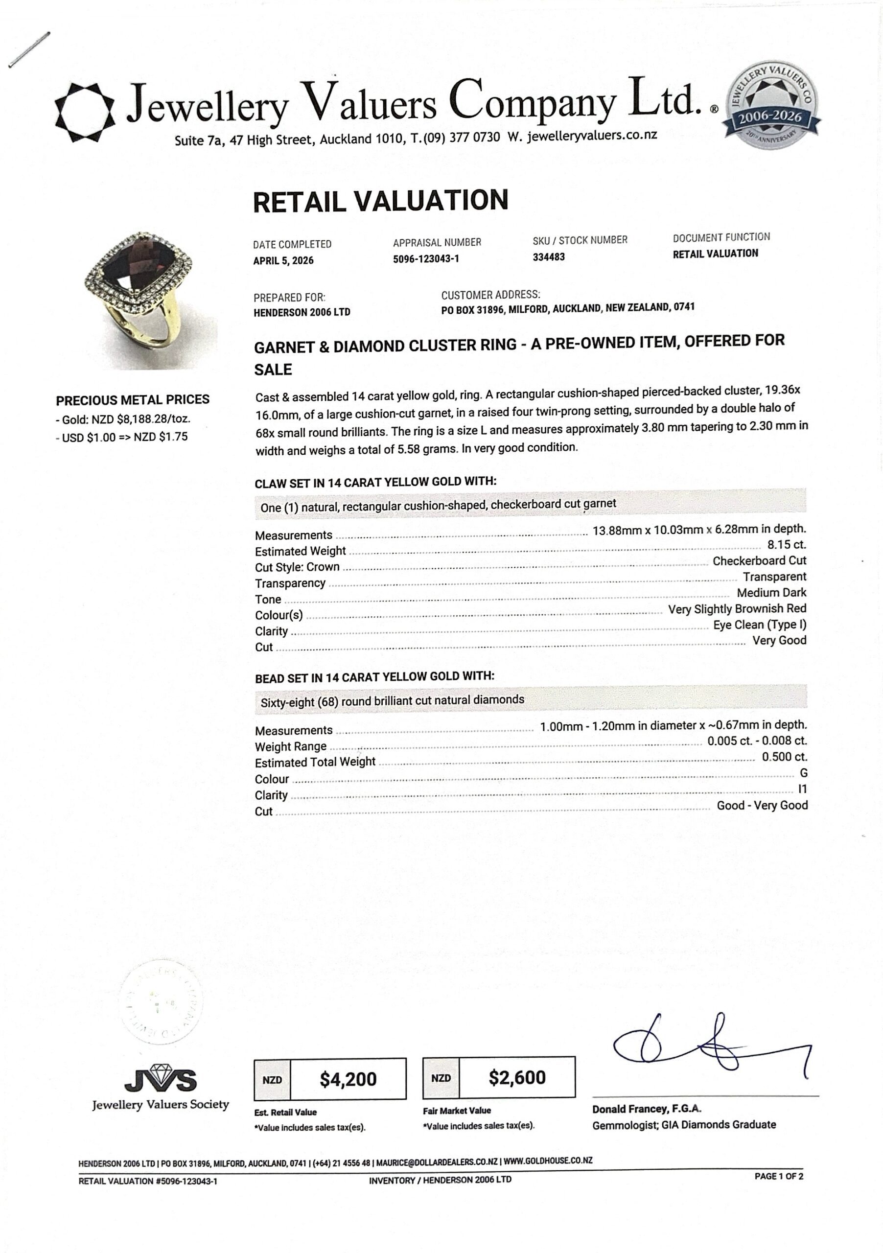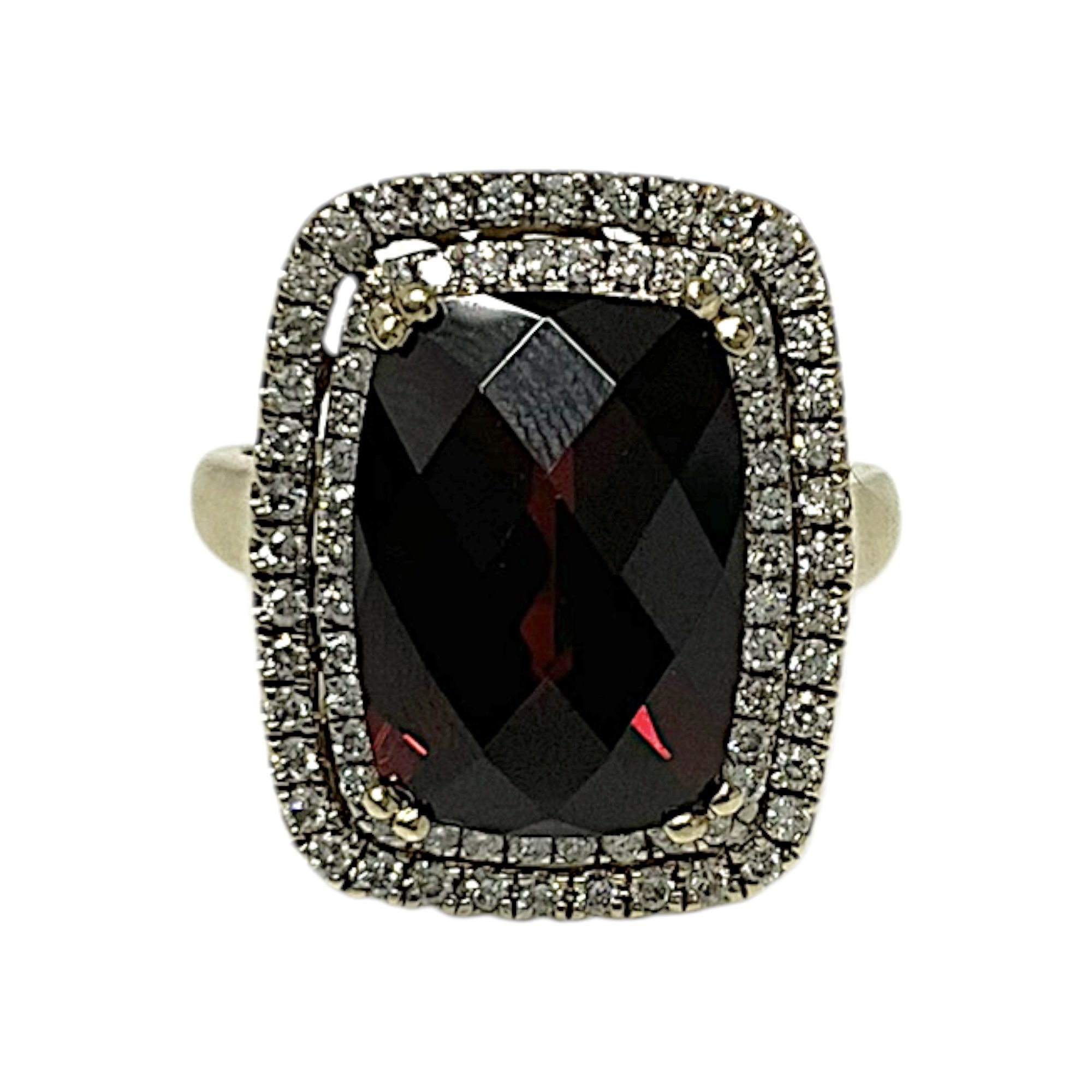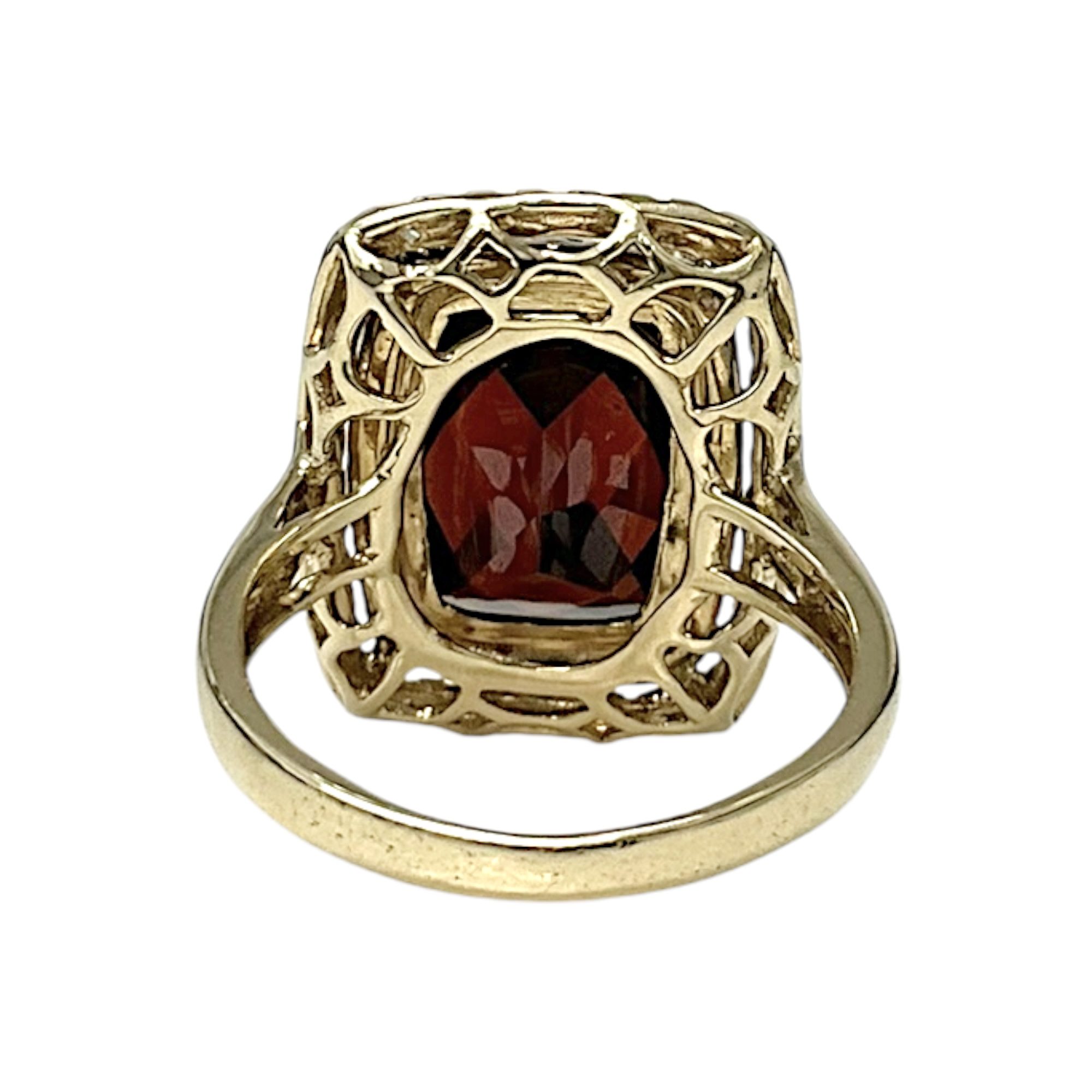 14CT YG GOLD GARNET RING 5.6GMS TDW0.50CTS + VAL