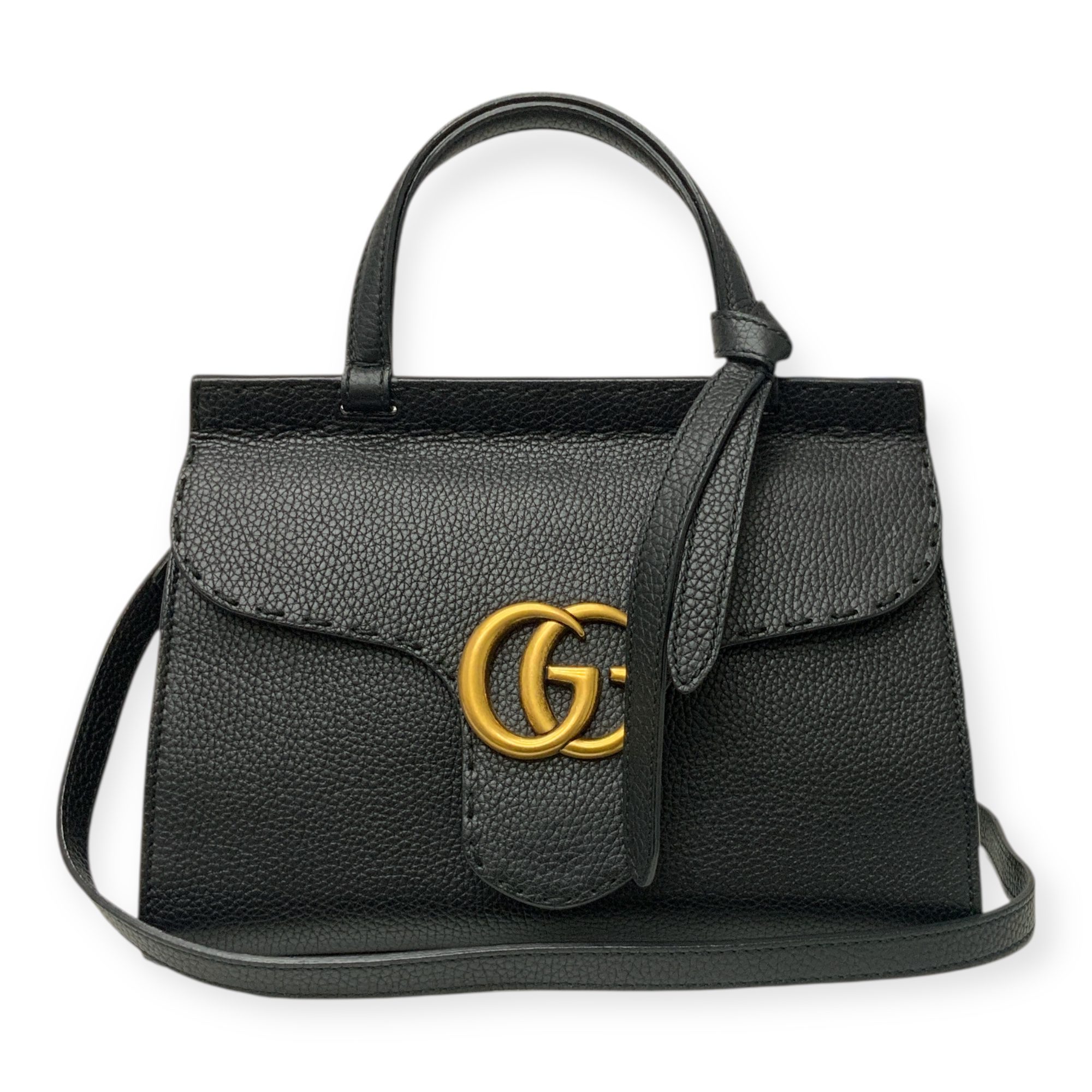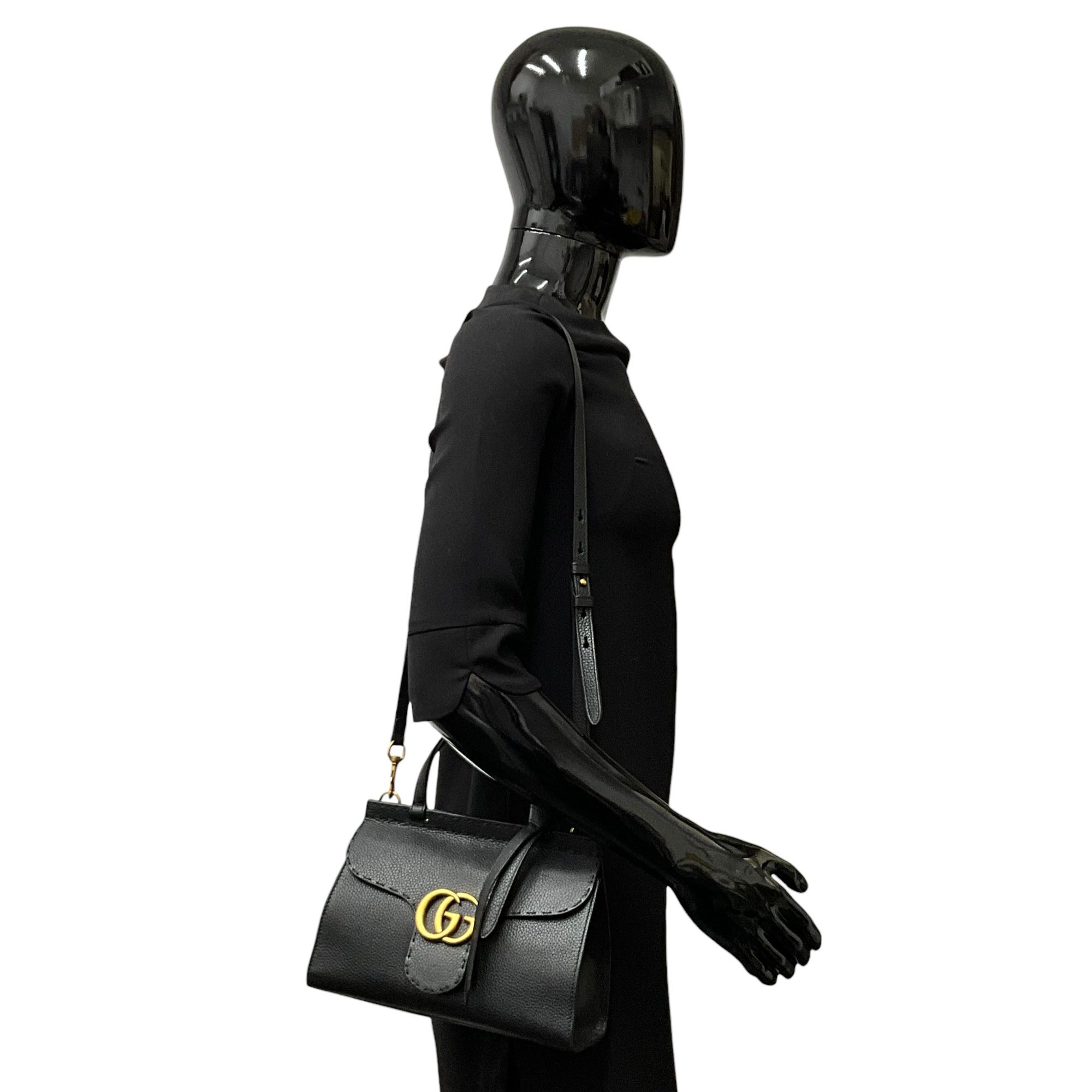 GUCCI BAG CALFSKIN MARMONT TOP S/N:4426224988 ENTRUPY #29B3WMQ BLACK COMES WITH DUSTBAG NO BOX TESTED