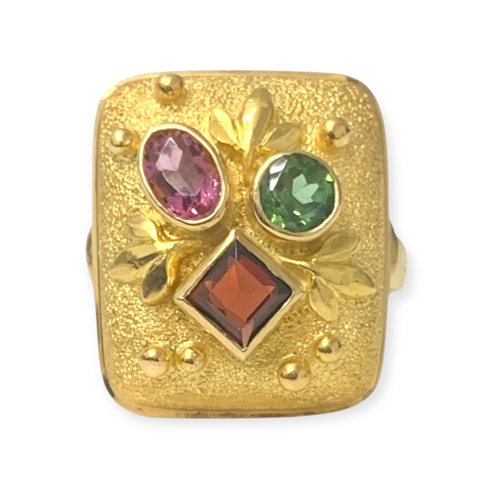 18CT YG GOLD MULTI STONE RING 11.7GMS