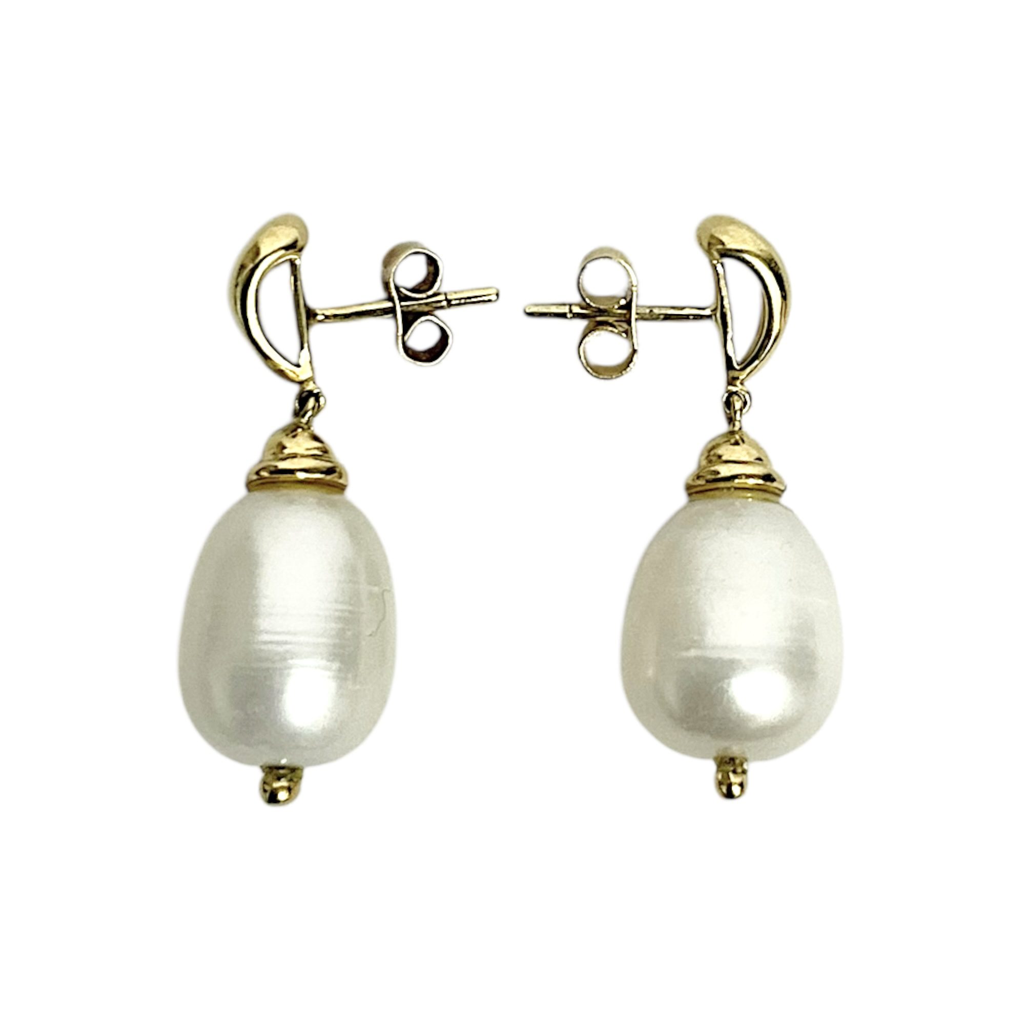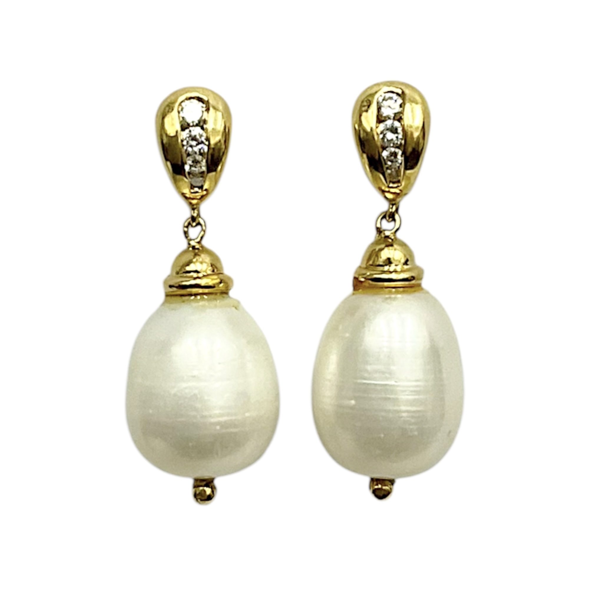 18CT Y/G GOLD P EARRINGS 9.71GMS TDW0.20CTS WHITE PEARL