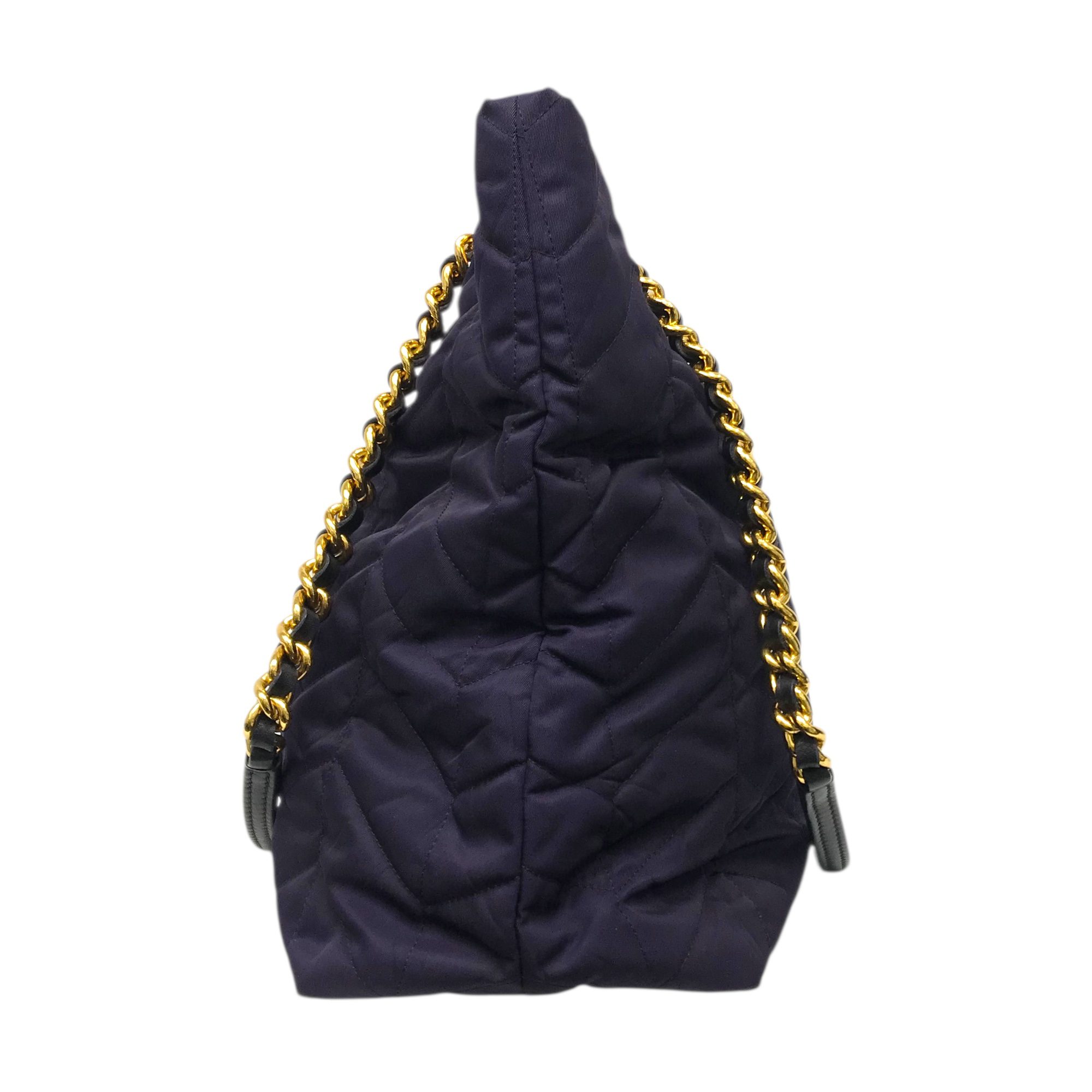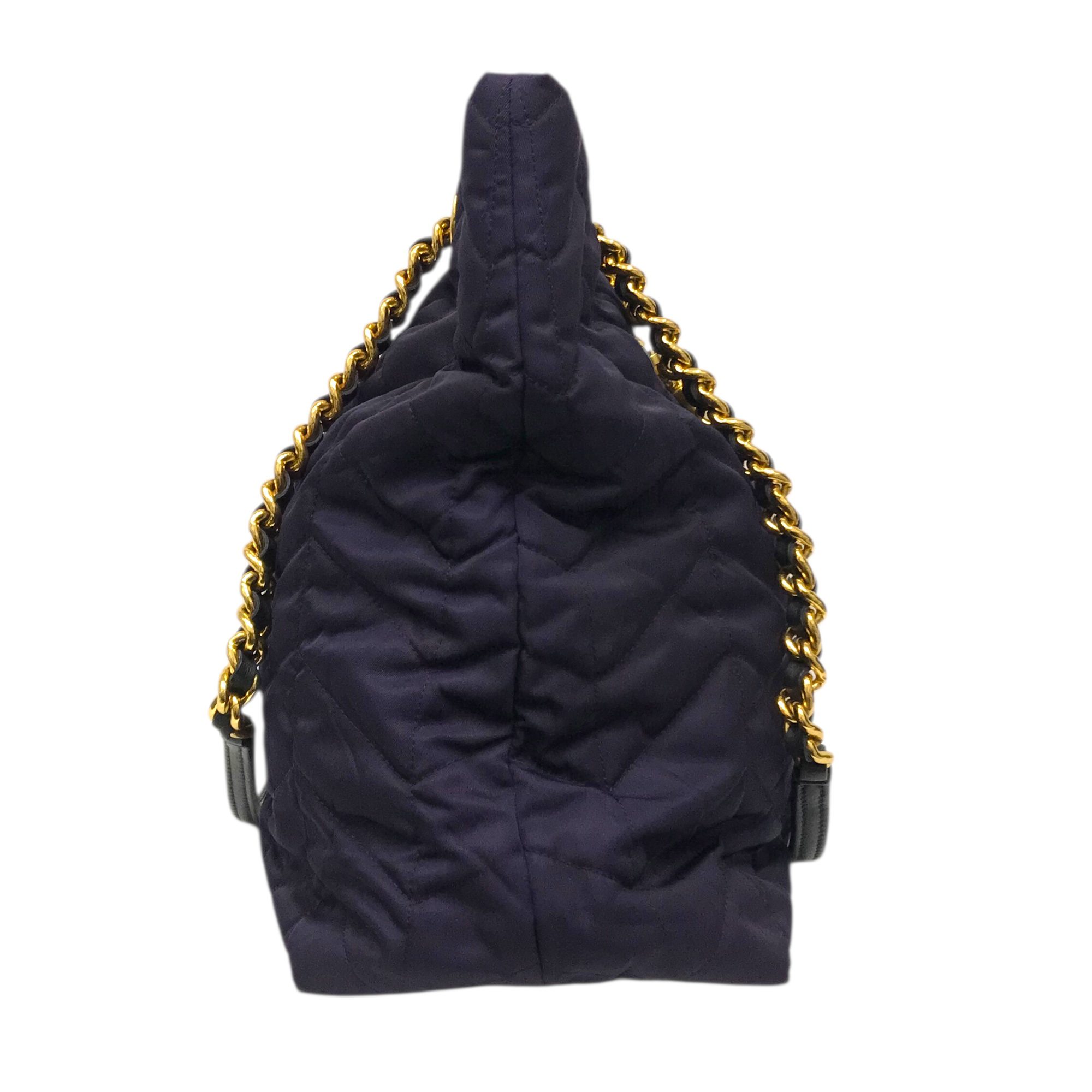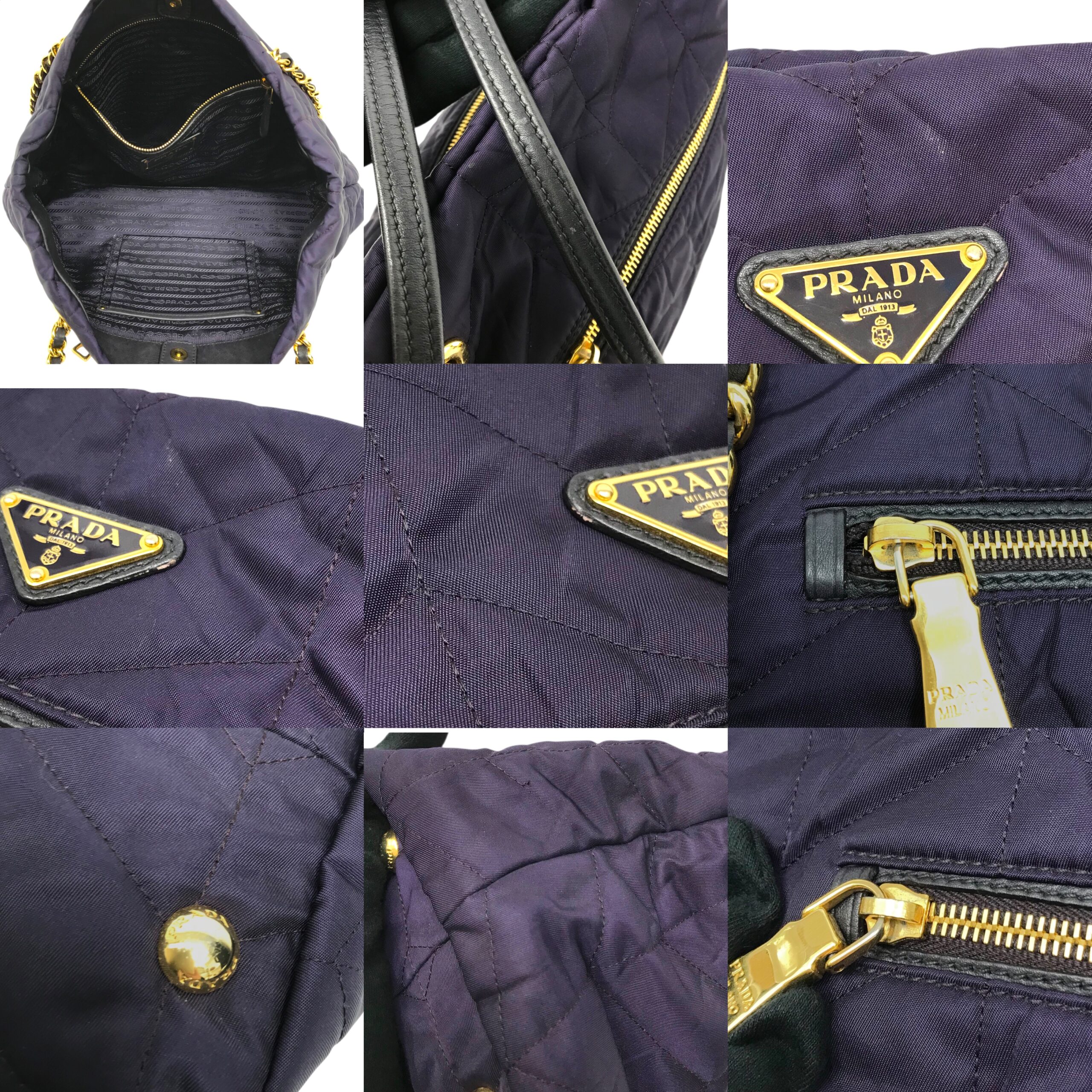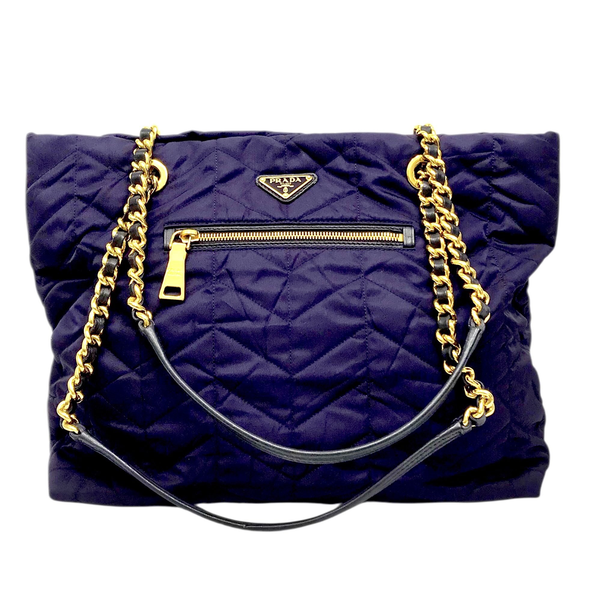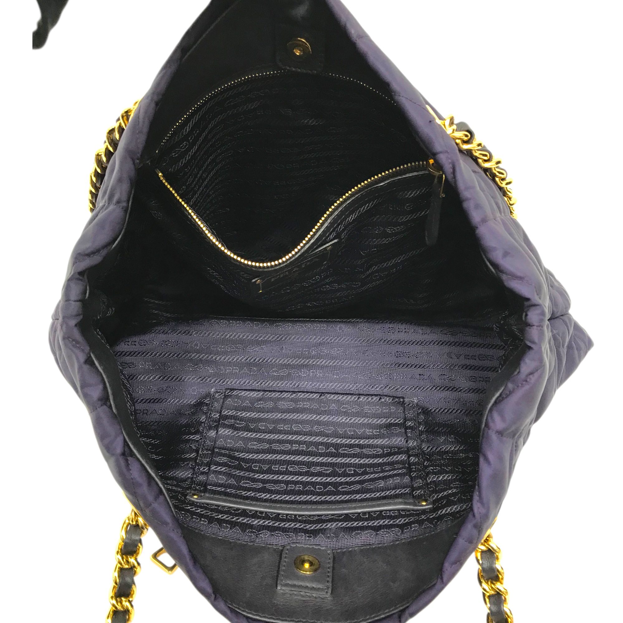 PRADA CHAIN FRONT ZIP TOTE QUILTED TESSUTO PURPLE DESIGNER BAG + D/B ENTRUPY #YM97QT2