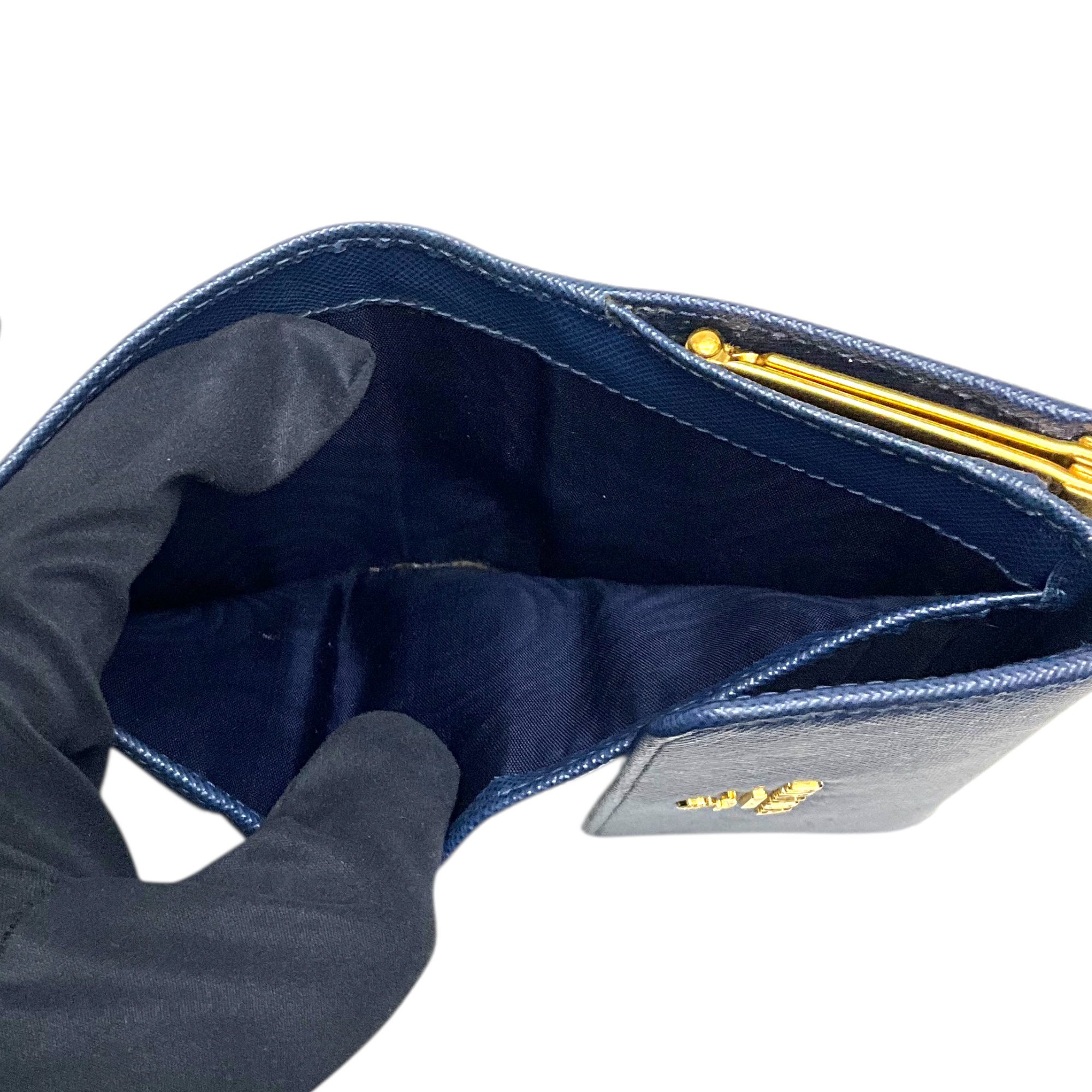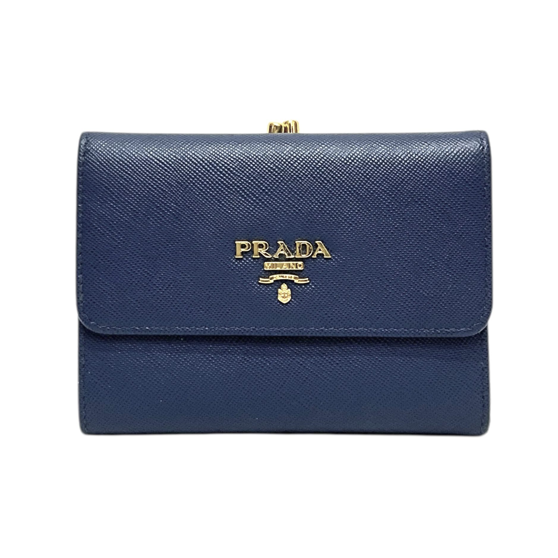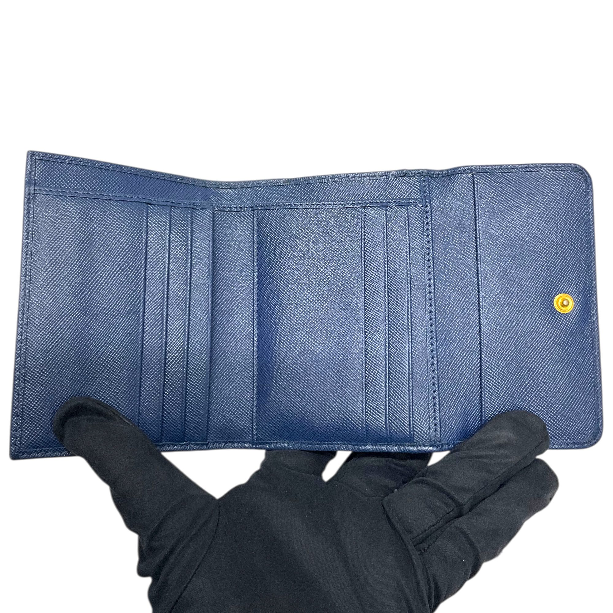 PRADA SAFFIANO TRIFOLD BLUE DESIGNER WALLET 224 + BOX ENTRUPY #6Y4QCX2