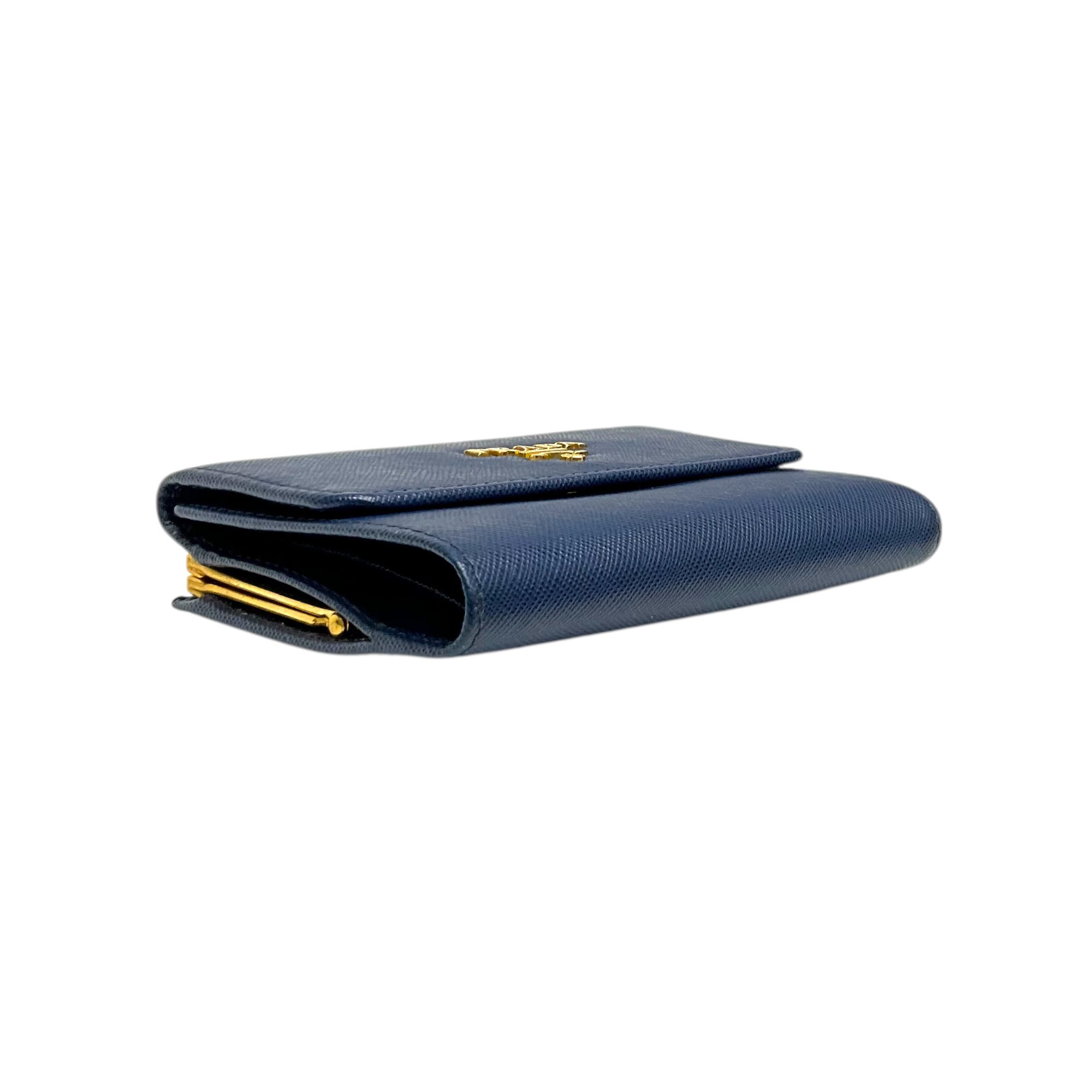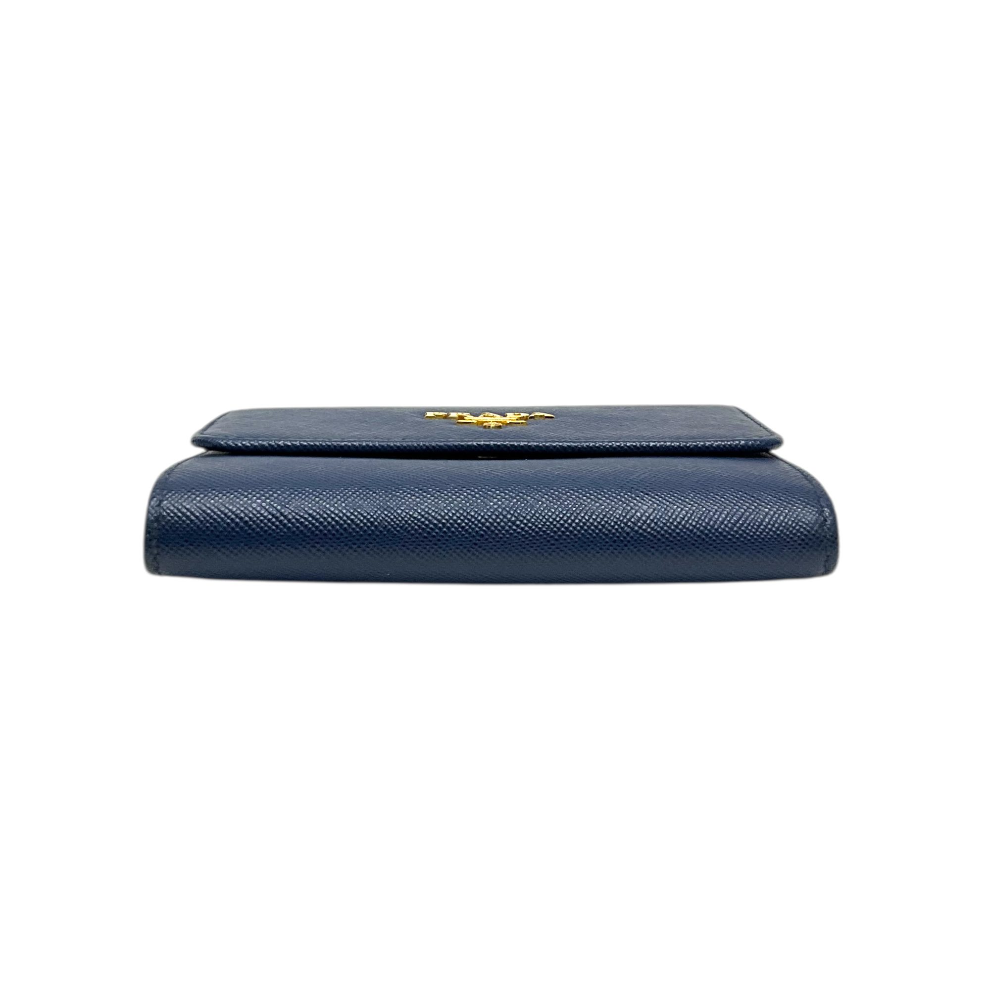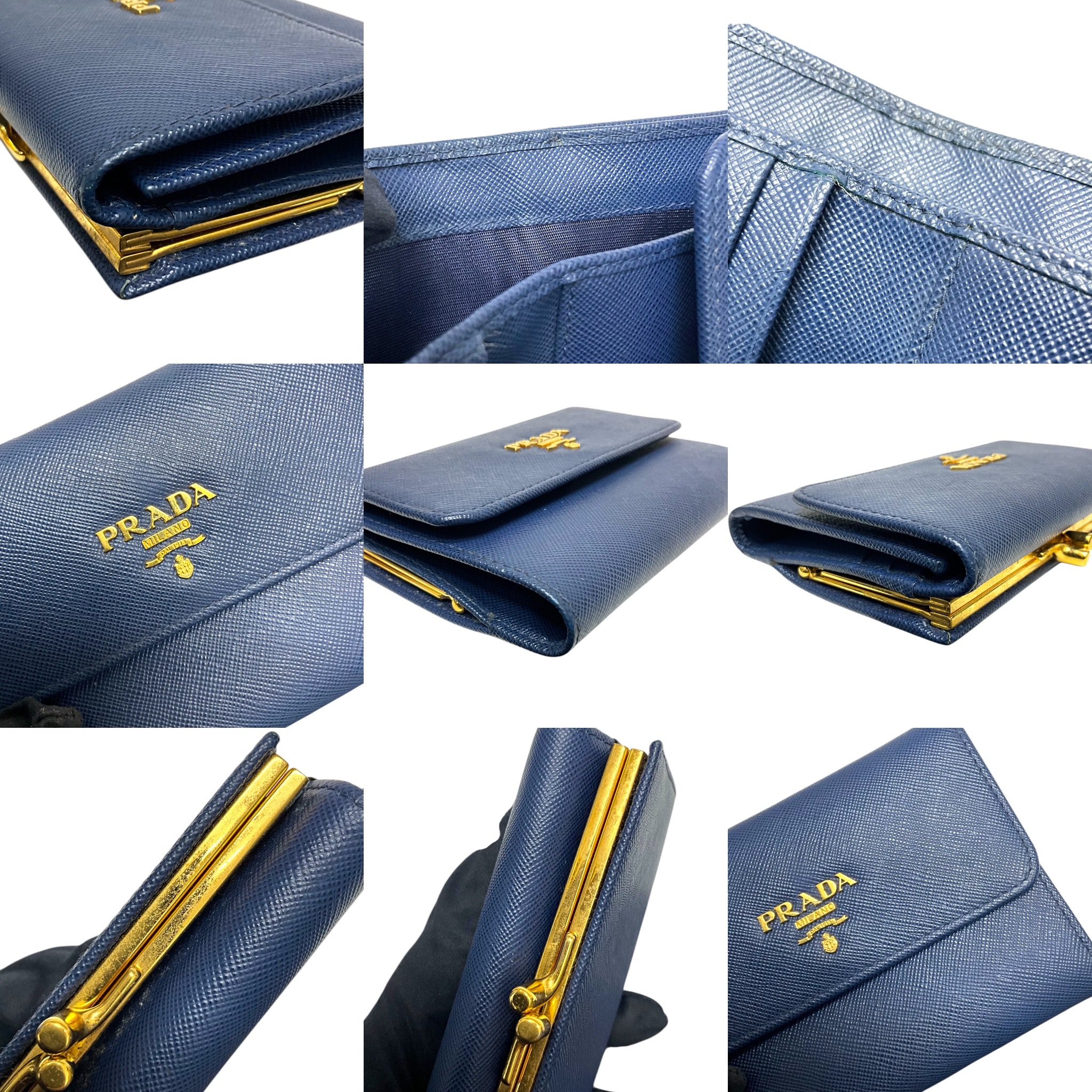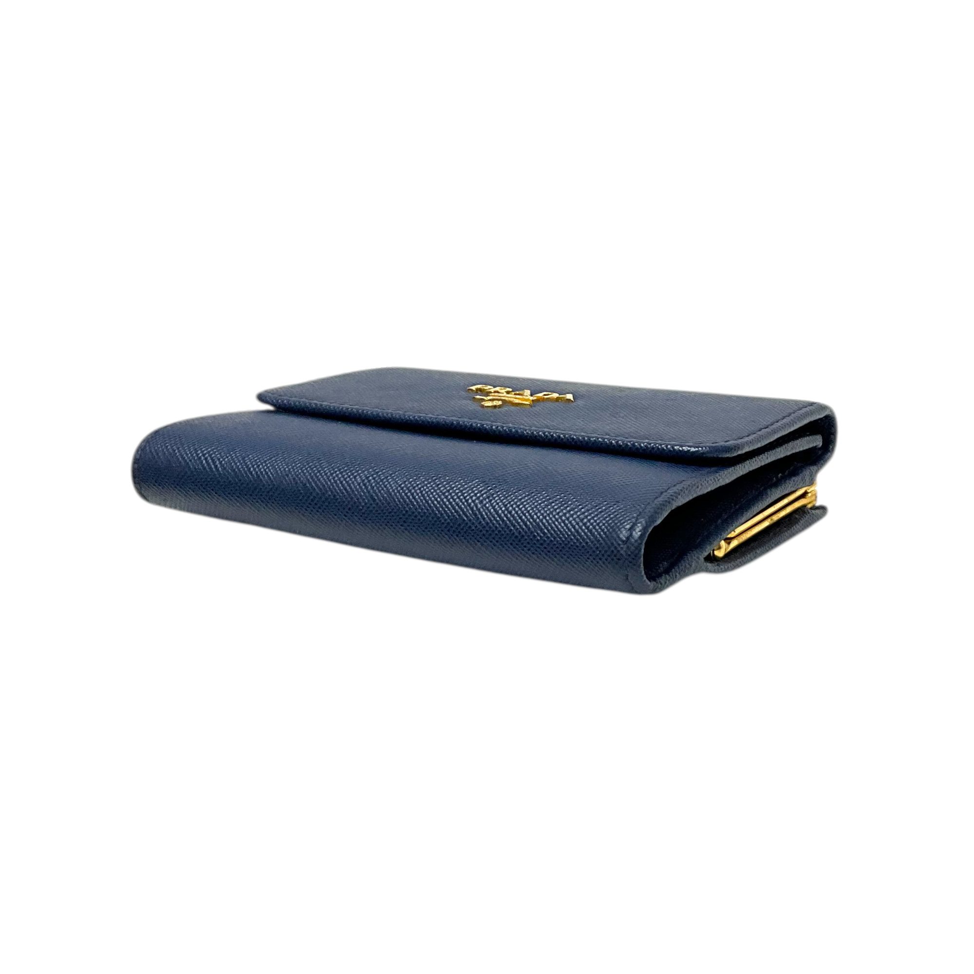 PRADA SAFFIANO TRIFOLD BLUE DESIGNER WALLET 224 + BOX ENTRUPY #6Y4QCX2