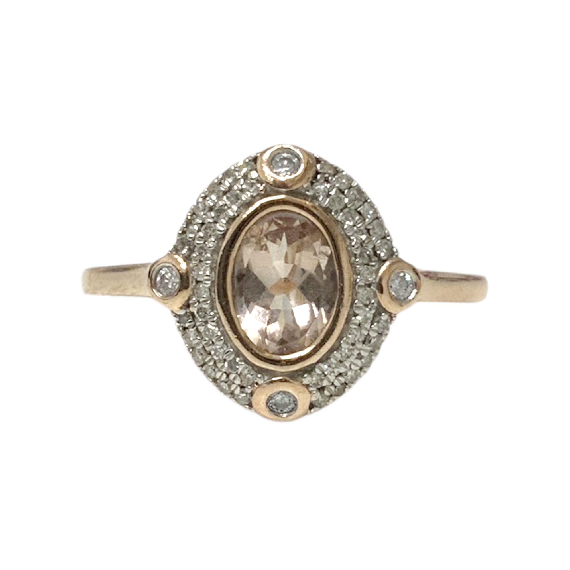 9CT RG GOLD RING 3.4GMS TDW0.10CTS PINK QUARTZ