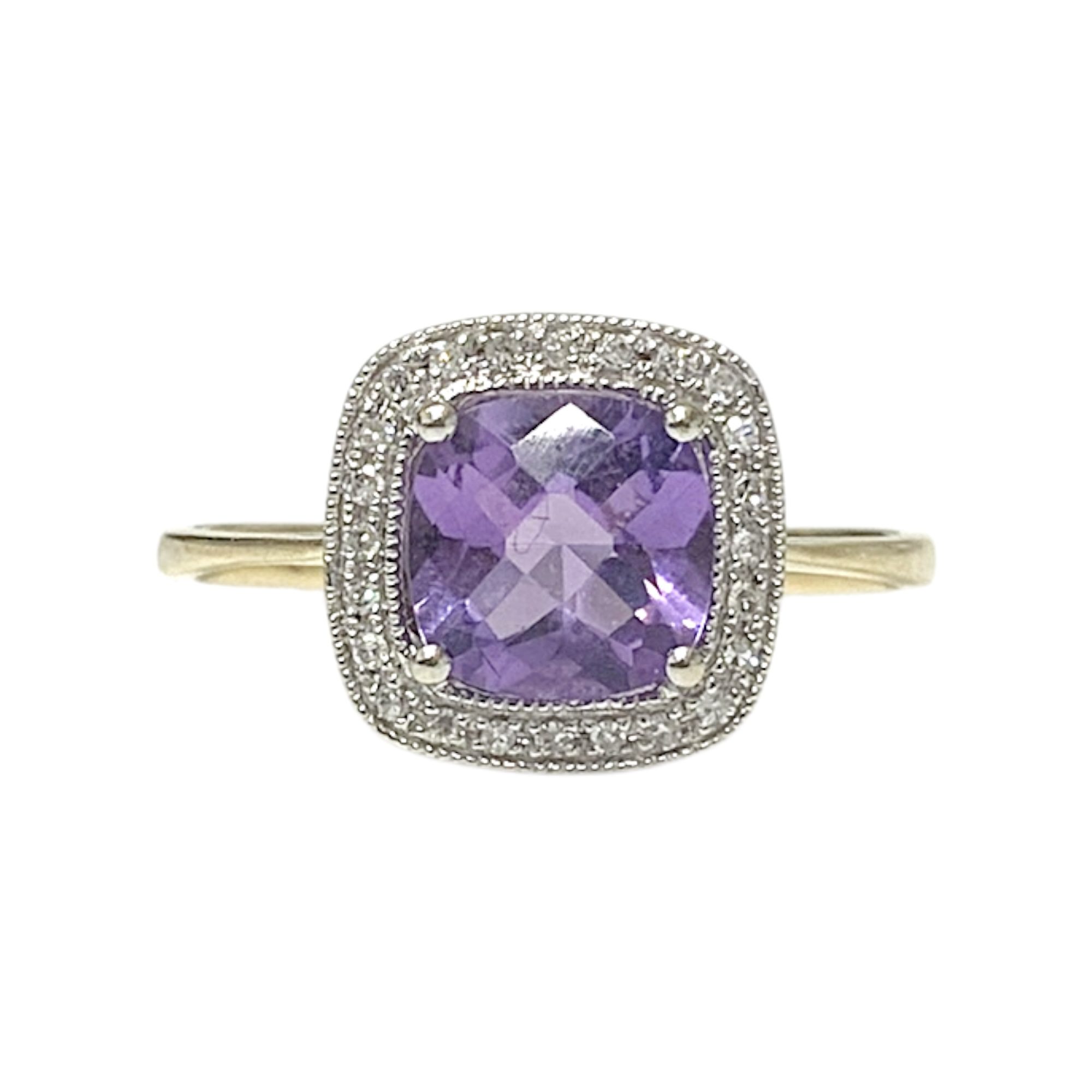 9CT YG GOLD RING 2.0GMS TDW0.10CTS PURPLE QUARTZ