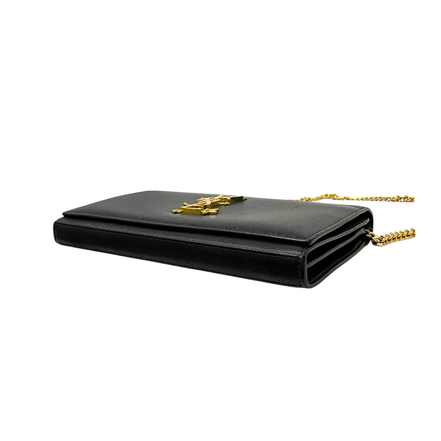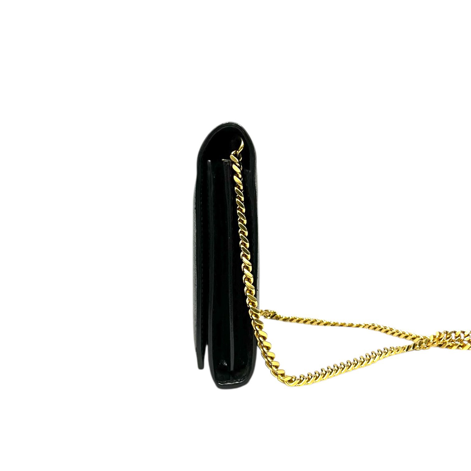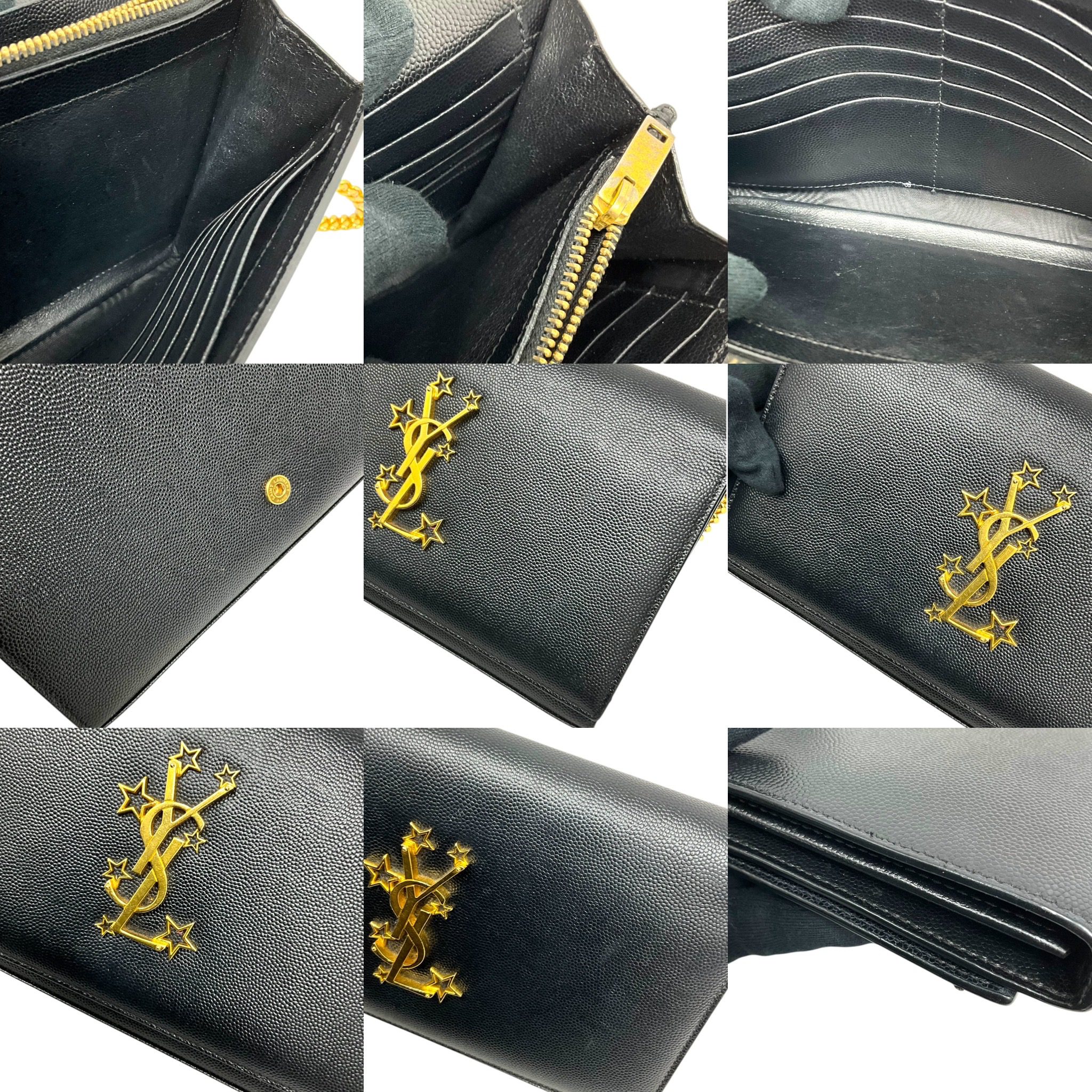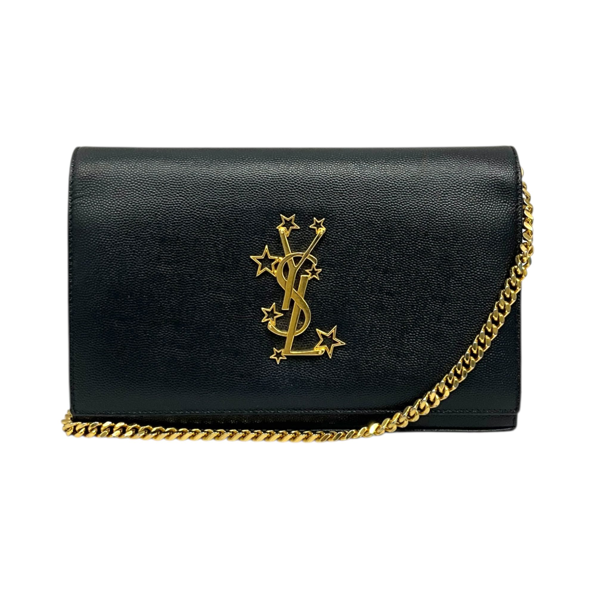 (50D) SAINT LAURENT KATE STAR WALLET ON CHAIN BAG INN 447 933 0716 NO DB GOOD CONDITION SHOWS SOME SIGNS OF USAGE MOSTLY RUBBINGS ON CORNERS SCUFFS ON LEATHER WEAR AND HEAVY FADING ON HARDWARE MINIMAL STAINING ON INTERIOR POCKET