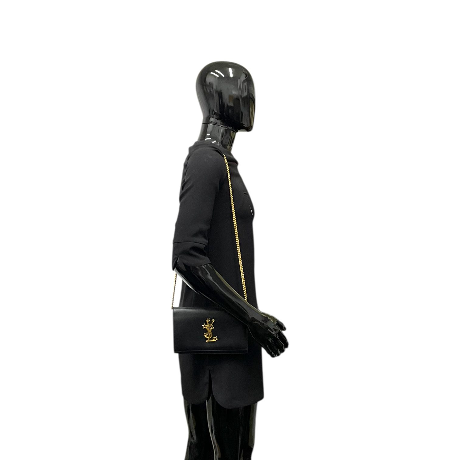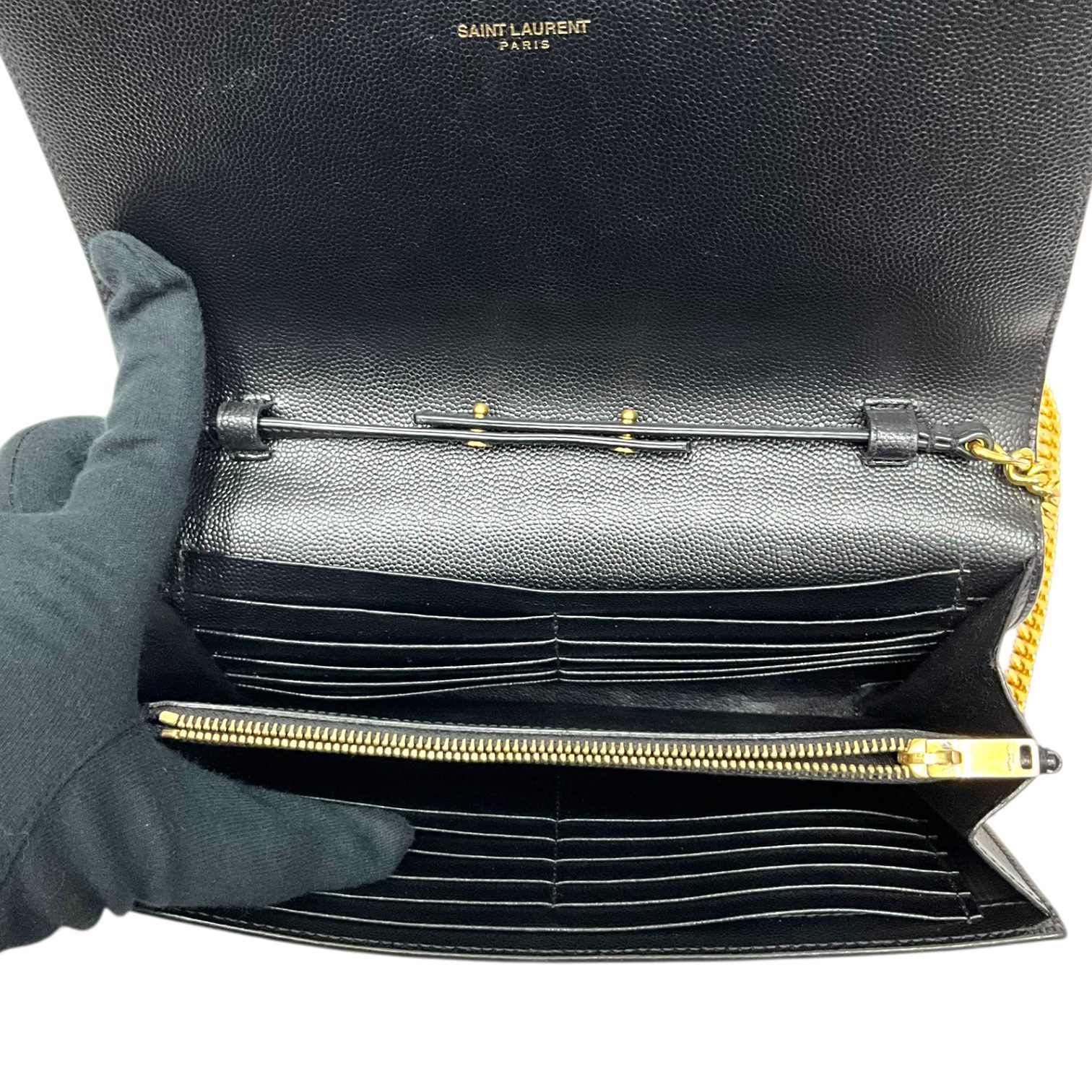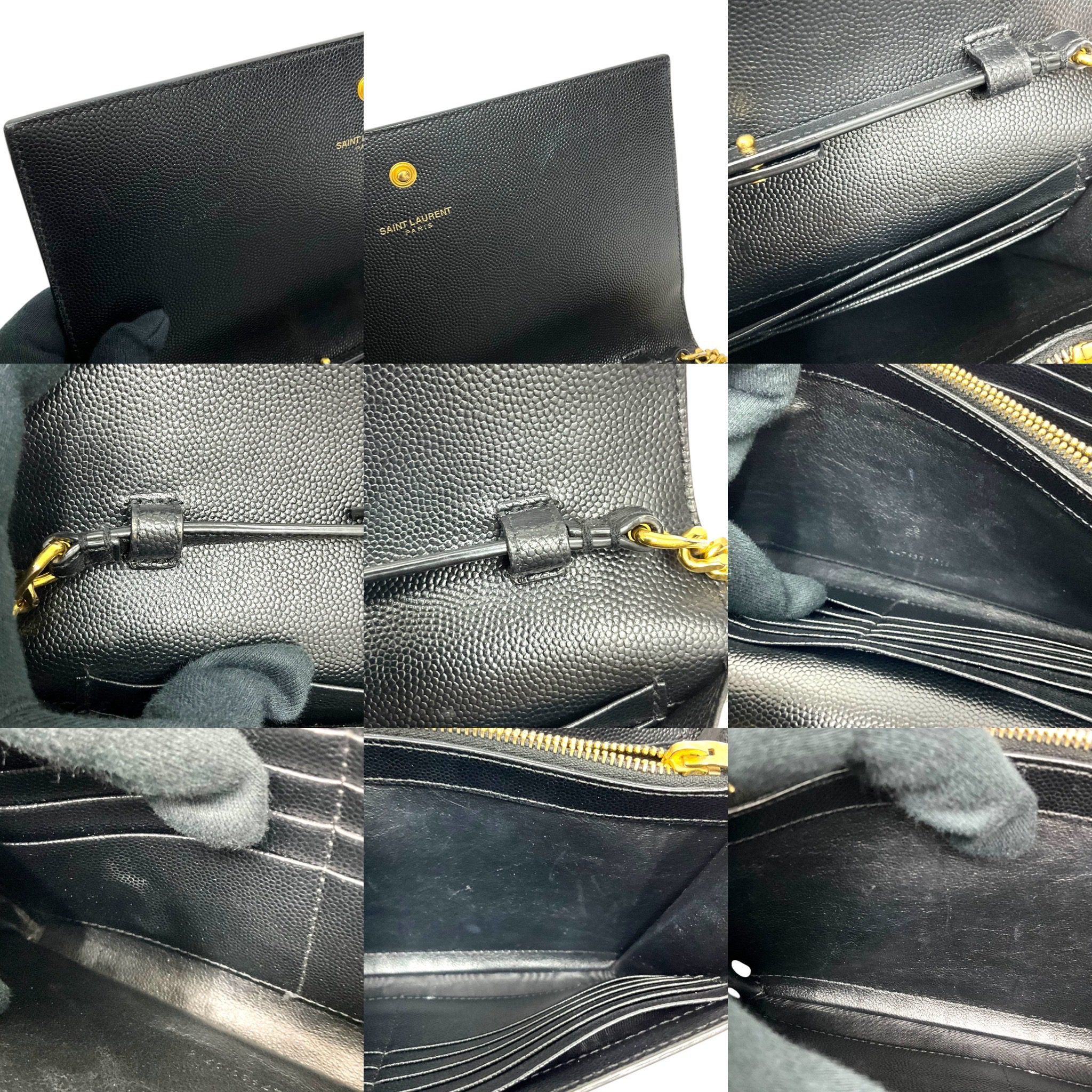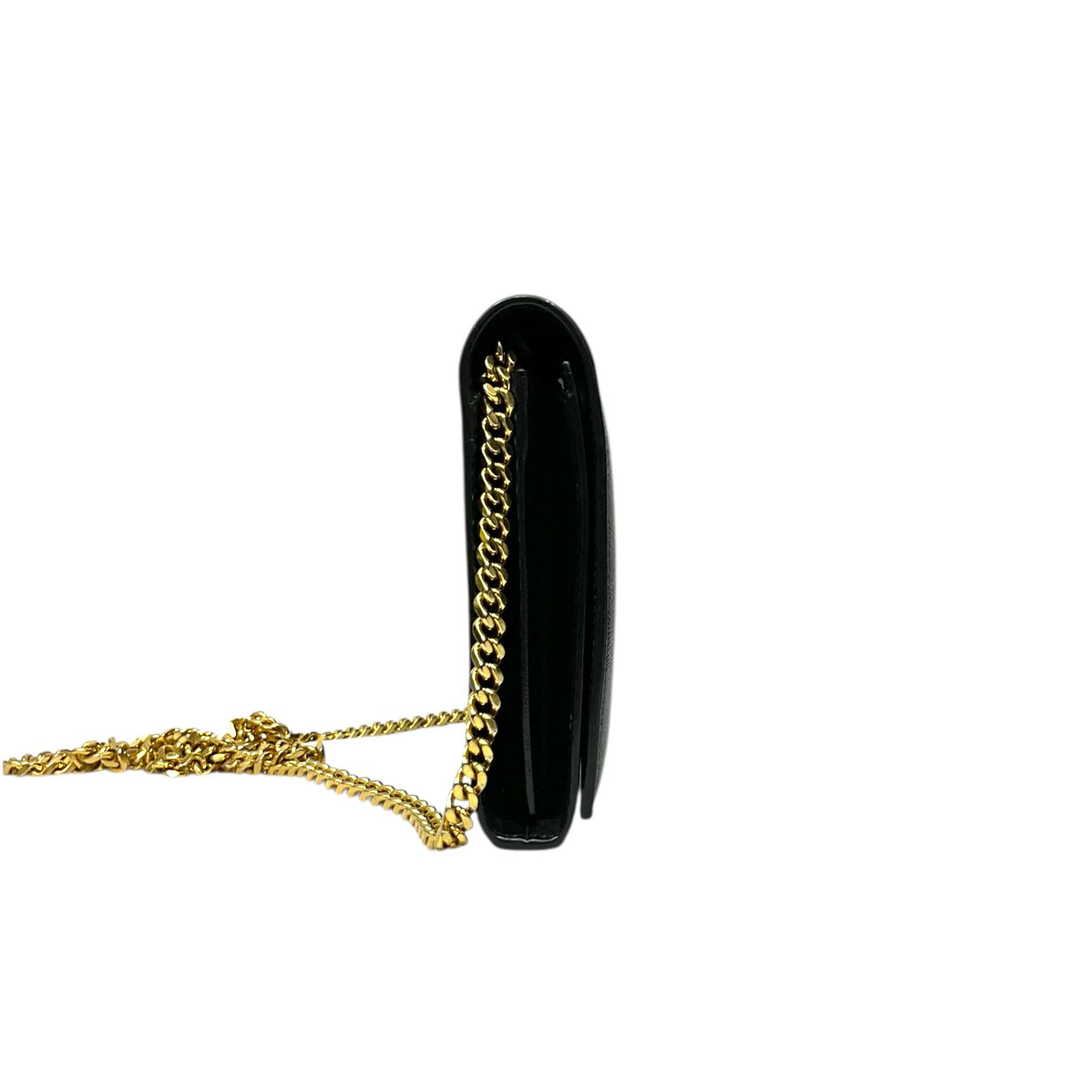 (50D) SAINT LAURENT KATE STAR WALLET ON CHAIN BAG INN 447 933 0716 NO DB GOOD CONDITION SHOWS SOME SIGNS OF USAGE MOSTLY RUBBINGS ON CORNERS SCUFFS ON LEATHER WEAR AND HEAVY FADING ON HARDWARE MINIMAL STAINING ON INTERIOR POCKET