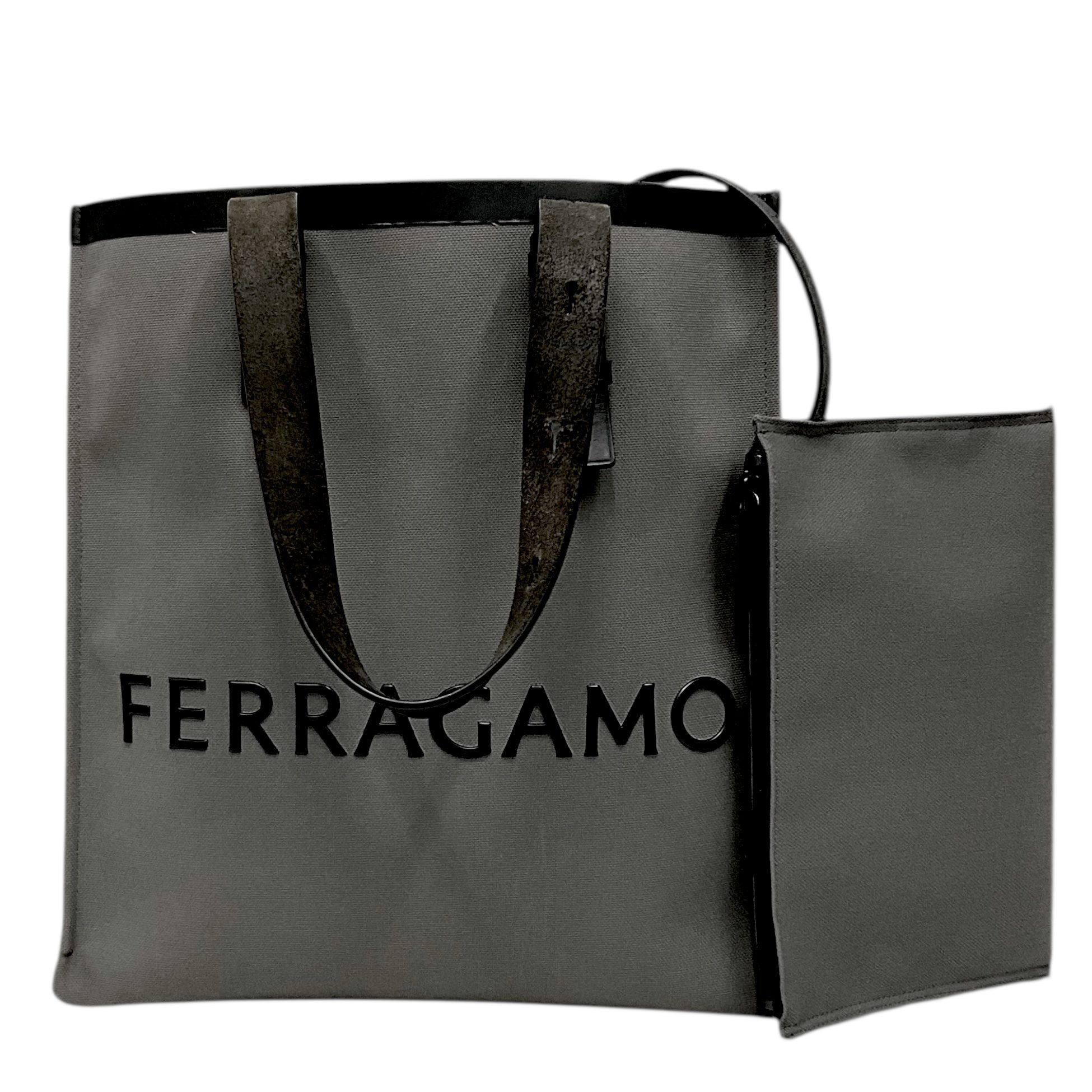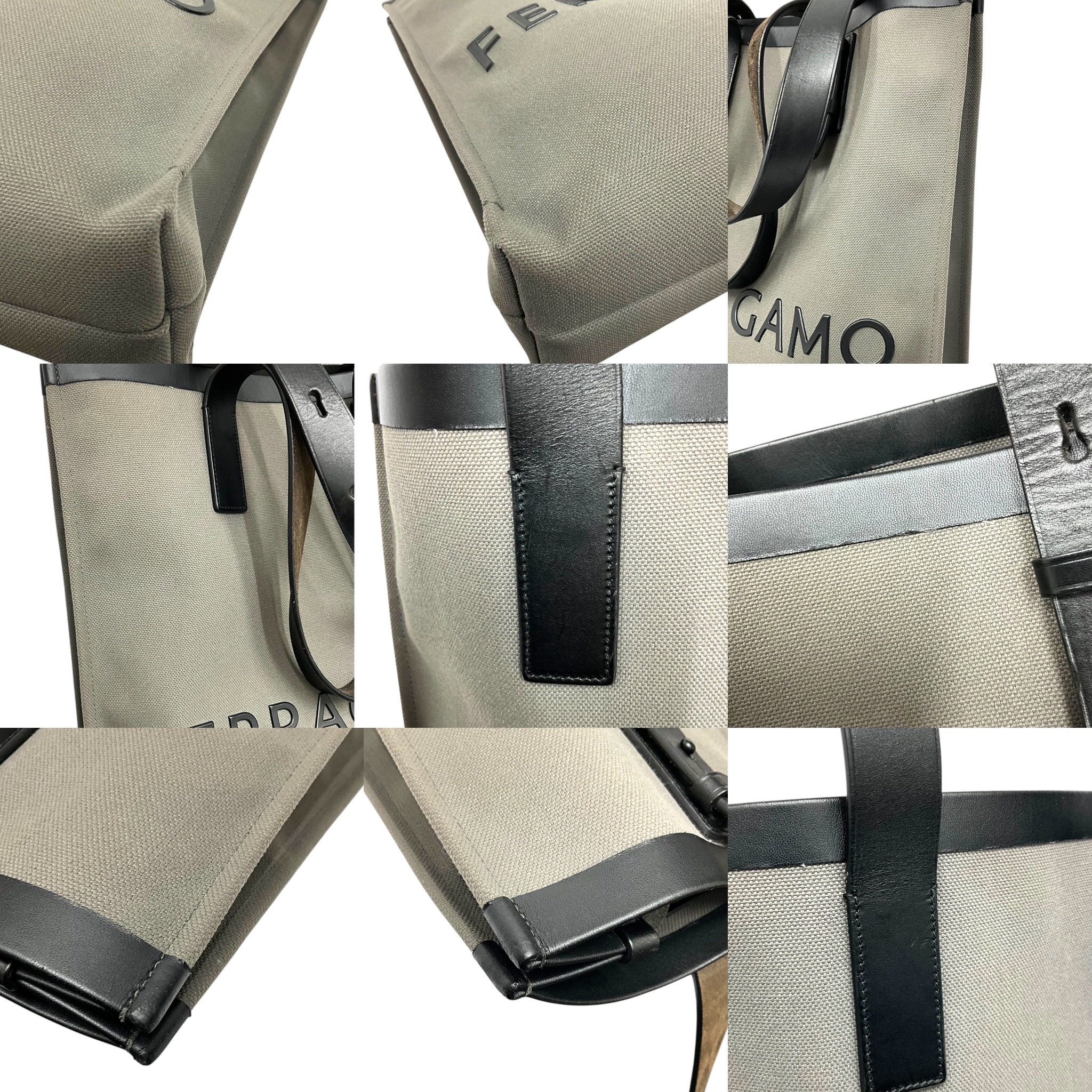 SALVATORE FERRAGAMO CANVAS & LEATHER TOTE DESIGNER BAG