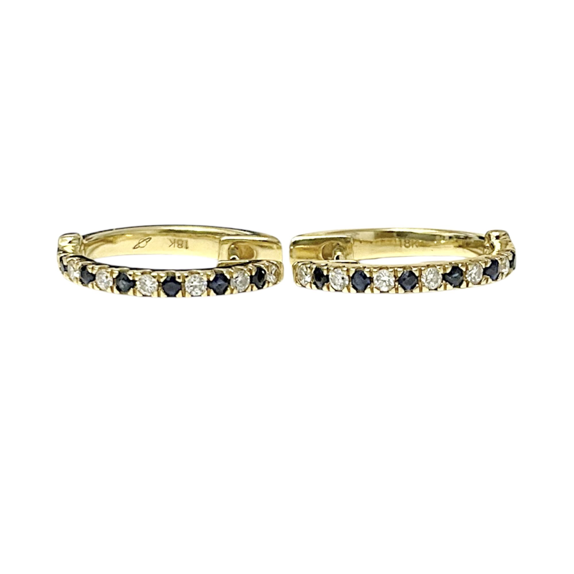 18CT YG GOLD HOOP EARRINGS 3.0GMS TDW0.12CTS SAPPHIRE