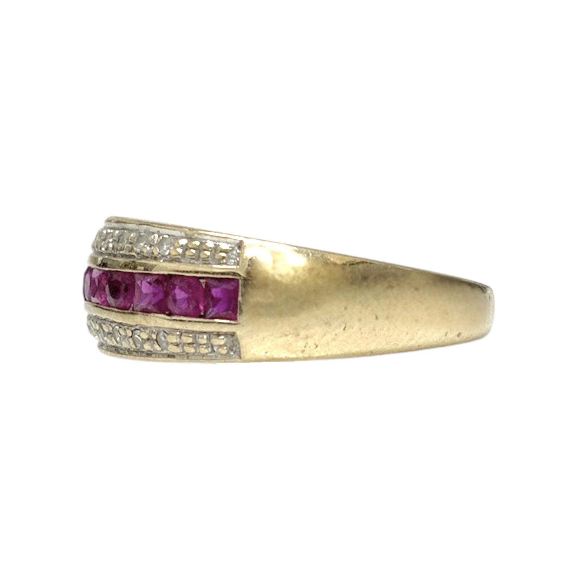 10CT GOLD RING 2.7GMS TDW0.10CTS SYN RUBY