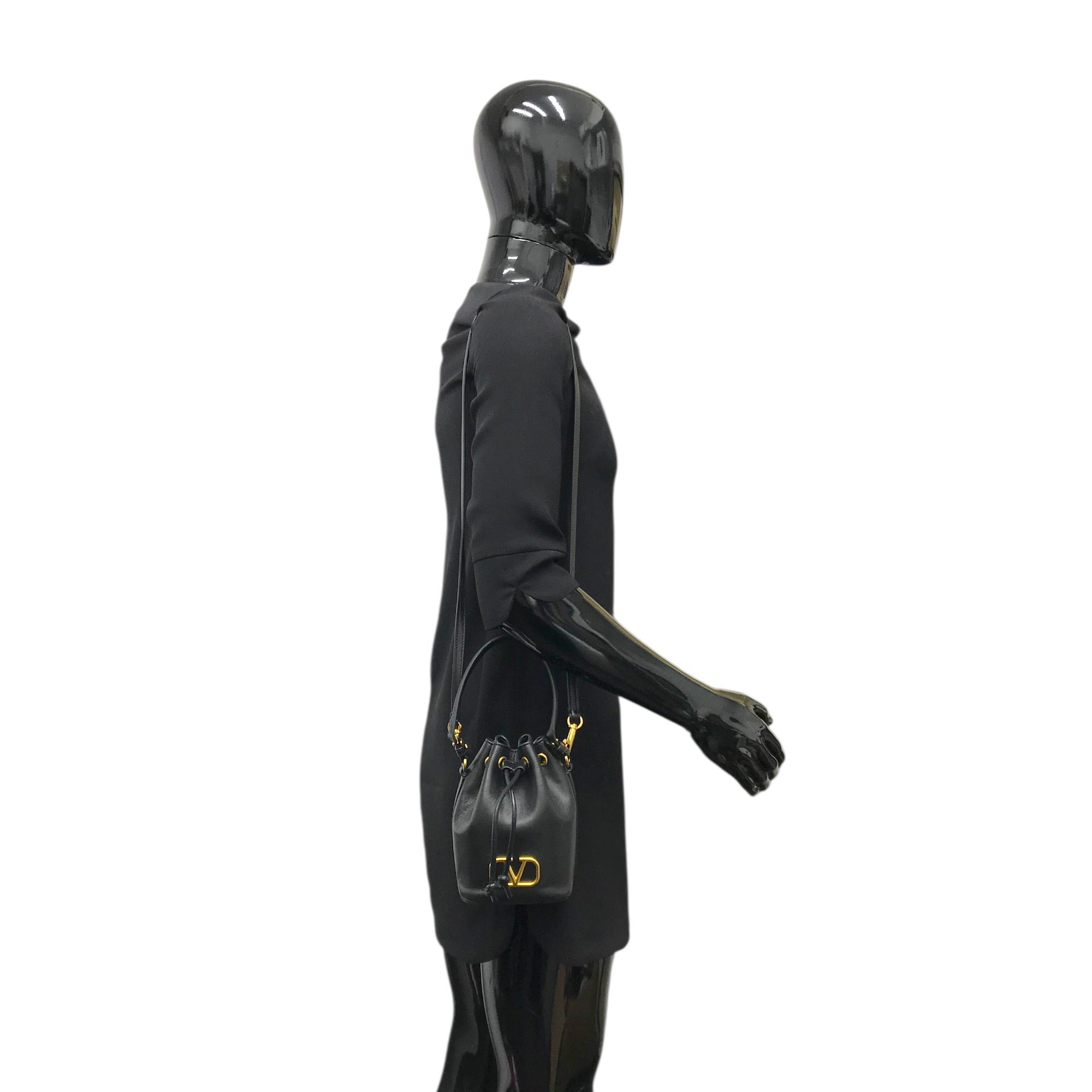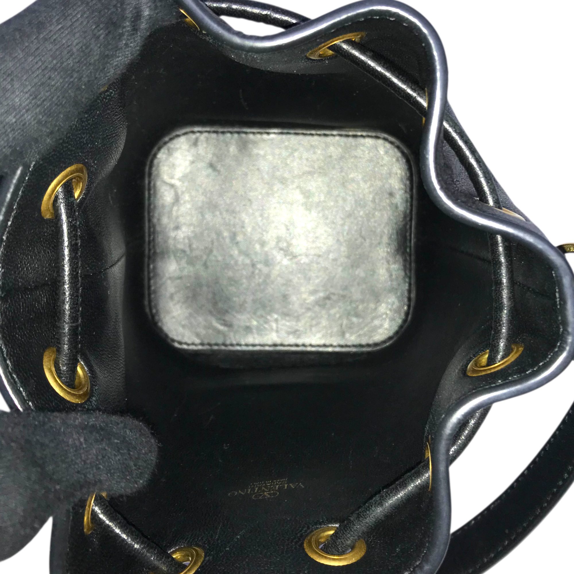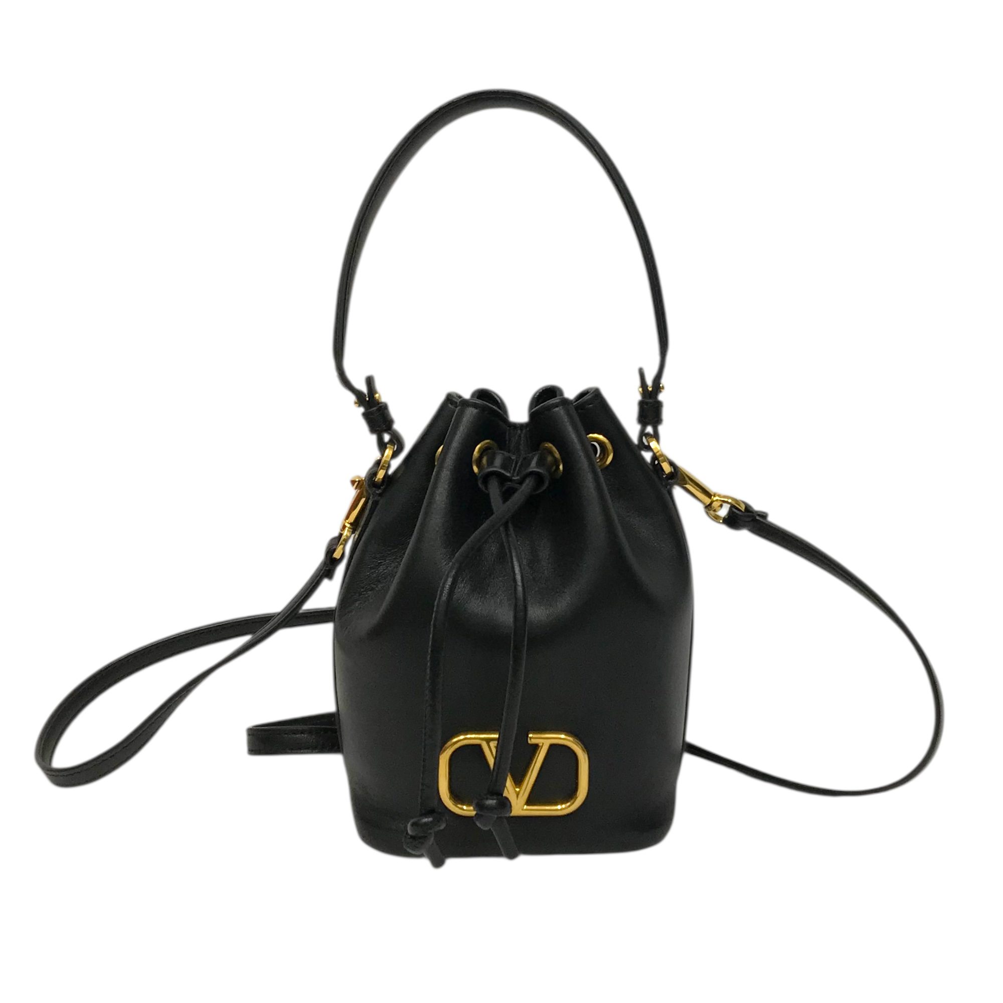 VALENTINO BLACK LEATHER BUCKET DESIGNER BAG + D/B + BOX ENTRUPY #26DCYDR